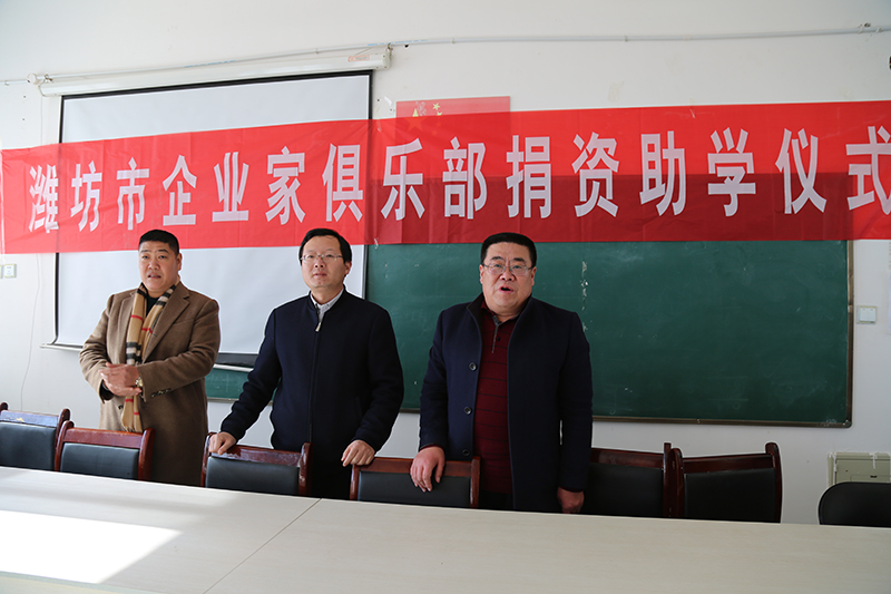 常务会长张光文向在场的师生、家长代表简要介绍了潍坊东方企业家俱乐部的发展情况、办会宗旨和本次活动的目的。鼓励他们要好好学习,树立信心,勇敢面对困难,靠自己的努力走出山村,将来回报家乡、回报社会。