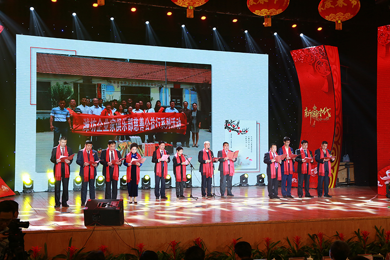 1月13日,“新时代·新使命·新征程——2018潍坊企业家迎新春晚会”在富华大酒店国际会议中心成功举行。潍坊市工商联领导代表、潍坊东方企业家俱乐部顾问团代表、兄弟商会领导代表、潍坊东方企业家俱乐部会员及企业届朋友一千余人欢聚一堂。