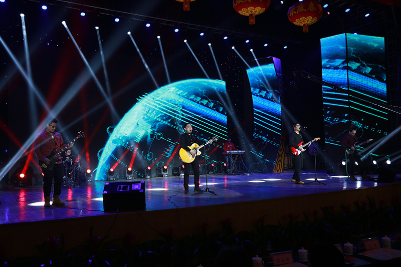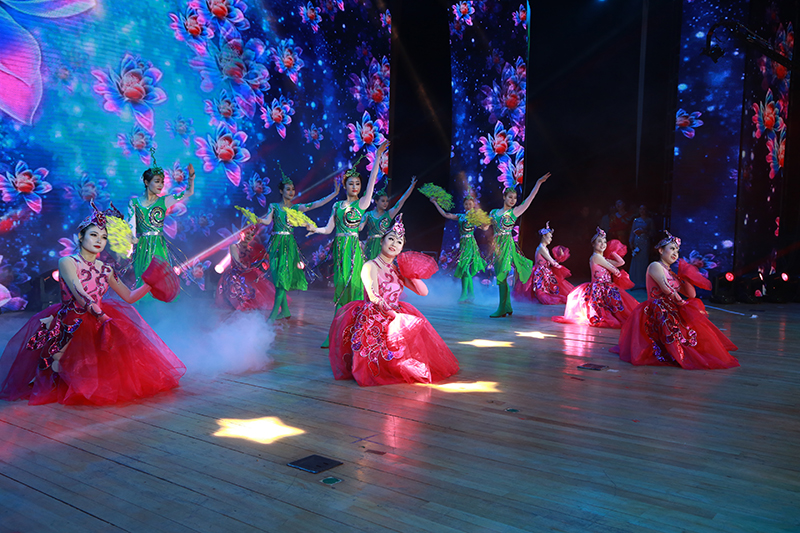 歌舞、相声、小品、大合唱……丰富多彩的晚会节目,使演出现场气氛热烈。