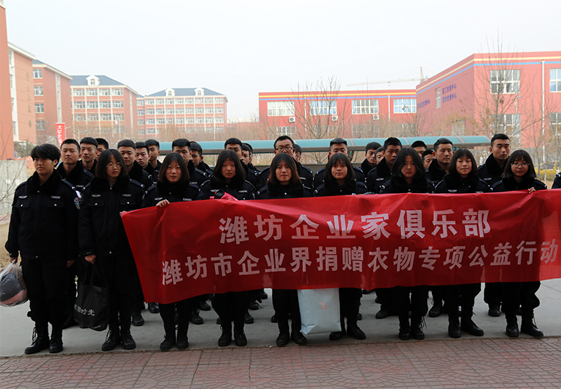 新余司法警官学校潍坊分校与潍坊东方企业家俱乐部进行爱心衣物捐赠交接仪式