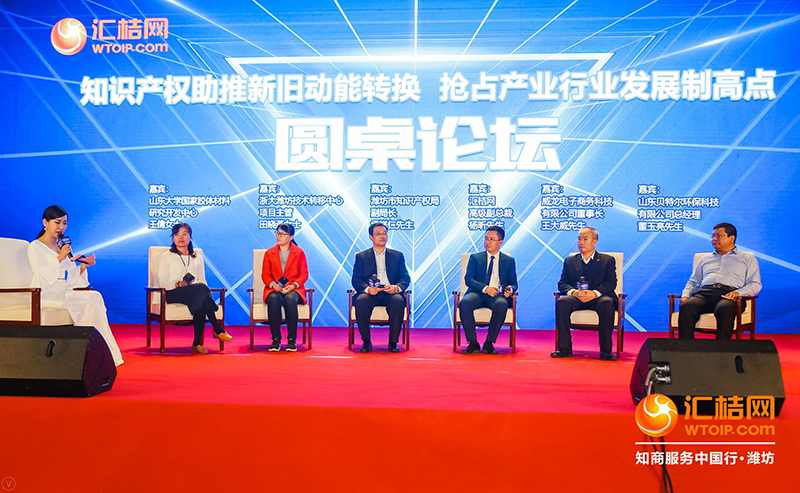 论坛上,汇桔网副总裁杨昕,潍坊市知识产权局副局长孟祥仁,山东大学国家胶体材料研究开发中心王倩,浙大潍坊技术转移中心项目主管田晓燕,潍坊东方企业家俱乐部会长、威龙电子商务科技有限公司董事长王大威,山东贝特尔环保科技有限公司总经理董玉亮等行业大咖、高校专家及企业代表围绕“知识产权助推新旧动能转换,抢占产业行业发展制高点”主题展开圆桌论道,助力企业掌握核心竞争力,共同开创经济发展新格局。