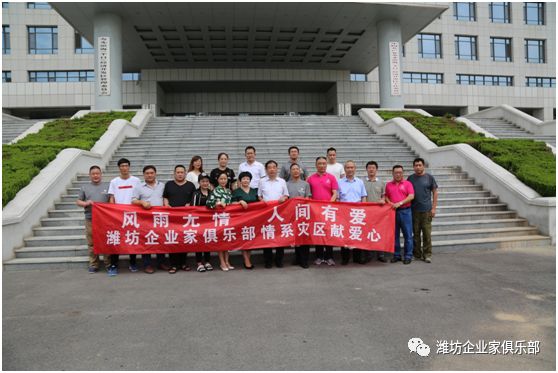 潍坊东方企业家俱乐部自成立以来便成立慈善工作站,并建立慈善公益工作板块,4年多来慈善工作站在市慈善总会的领导支持下,多次组织公益捐献及慈善救助工作。一方有难八方支援,潍坊东方企业家俱乐部特向社会各界发出抢险救灾献爱心倡议,热切期盼社会各界发扬博爱精神,慷慨解囊,鼎力相助,与灾区群众风雨同舟、共度难关,为受灾群众献上温情和爱心!