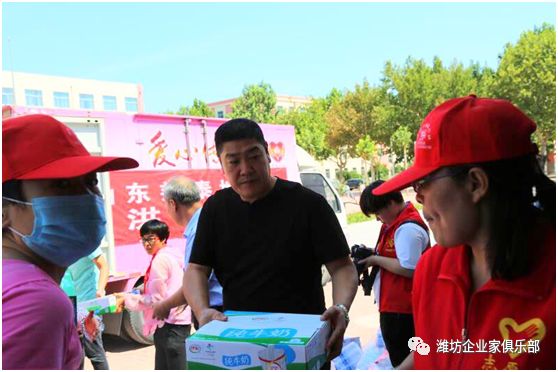 8月26日、27日,潍坊东方企业家俱乐部组织部分参与捐助的企业家代表赶往寿光羊口镇、营里镇,为受灾群众送去生活物资和款项,共计价值7万余元。