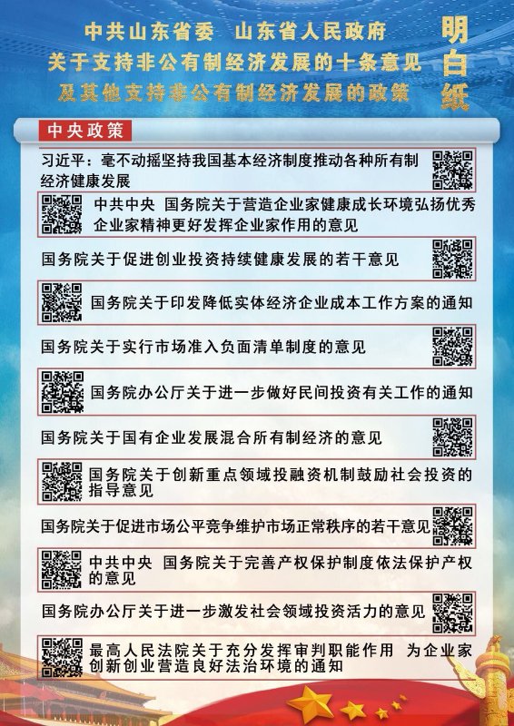 山东省有关支持非公经济健康发展的政策明白纸已下发,有需要了解有关政策的读者可扫码查看。