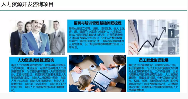 公司以服务于高科技型企业以及中小型智能智造的企业人力资源管理咨询、战略规划、人才发展为主。