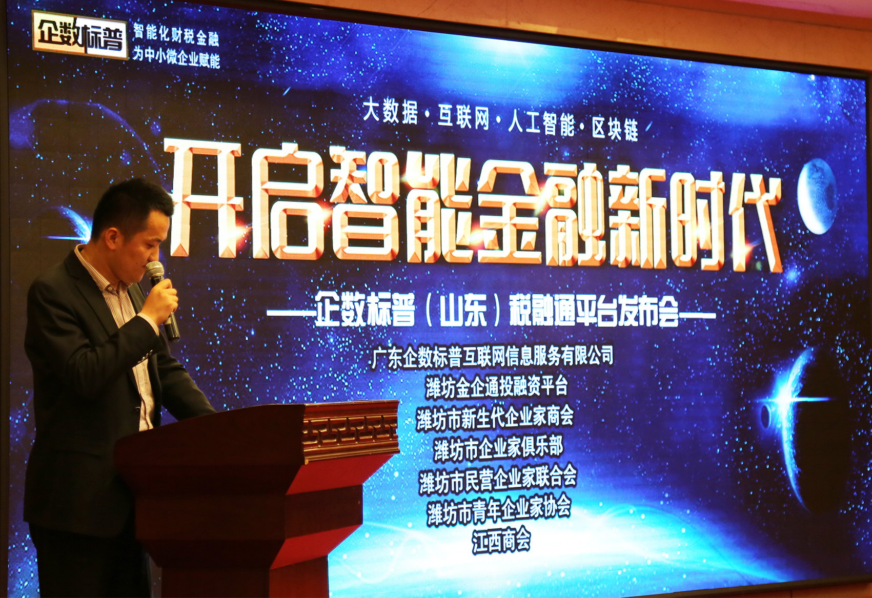 3月22日上午,由潍坊东方企业家俱乐部联合广东企数标普“税融通”服务平台、潍坊市民营企业联合会、潍坊市新生代企业家商会等主办的企数标普“税融通”产品推介会在潍坊市东方大酒店组织举行,潍坊市80余家知名企业参与推介会,了解产品详情。