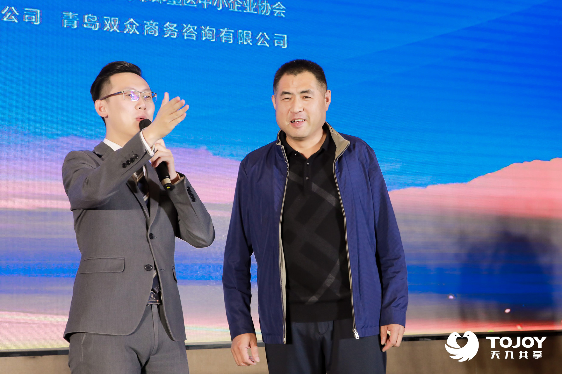 天九共享平台投资集团华北事业部青岛子公司总经理赵健,做了《企业零风险转型升级解决方案》的主旨报告,受到与会领导高度赞誉。