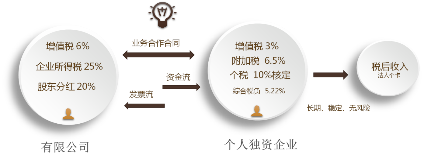 通过这个模式调整,原来河北建筑咨询公司独享的五百万利润,被合理分割到各家小企业(即上述个独企业),而这些个独企业有足够的税收优惠政策,自身的税负率相对降低,所以在整体利润不变的情况下,实现了总体税负降低的效果。