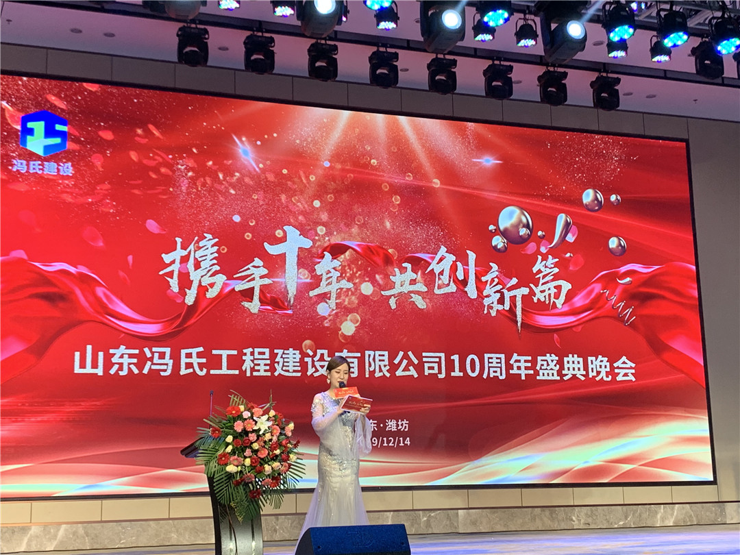 12月14日晚,潍坊东方企业家俱乐部副会长单位山东冯氏工程建设有限公司十周年盛典晚会在澳斯汀酒店成功举办。
