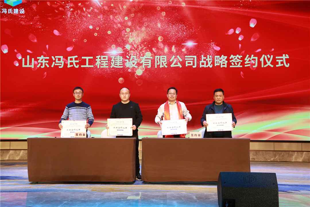 会长王大威、常务会长韩绍毅、副会长王强分别上台致辞,对山东冯氏工程建设有限公司十周年庆典表示热烈祝贺,并希望在未来能够继续携手合作、共同发展。