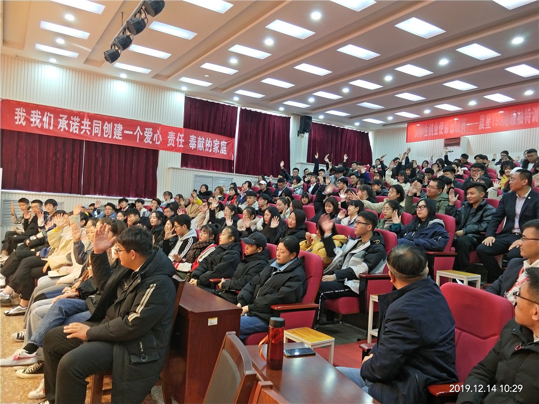 中国生命再造激发第一人导师、著名感恩教育专家教授李春景老师和中国老教授协会创新创业教育委员会秘书长,国家二级注册心理咨询师黄丹老师与近200位潍坊职业学院的学生开展了这场别开生面的大学生使命感教育领袖特训营。通过为期两天的编队、课程交流与游戏环节让学生们了解了大学生创就业的形式也增进了企业家们与学生之间的互动与了解。