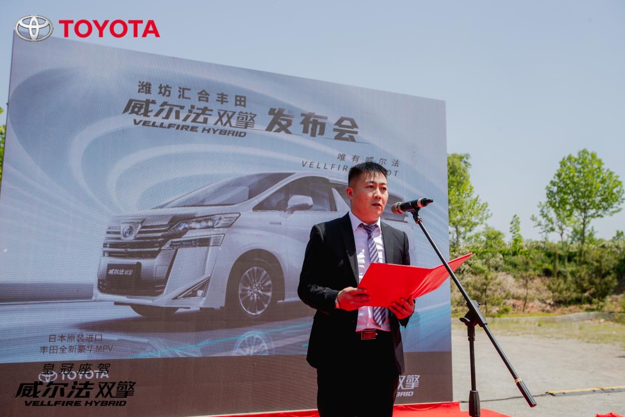 潍坊东方企业家俱乐部会长王大威进行了致辞,在致辞中,王会长表示威尔法双擎的前景是不可估量的,并对潍坊汇合丰田销售业绩长虹表示了祝福。