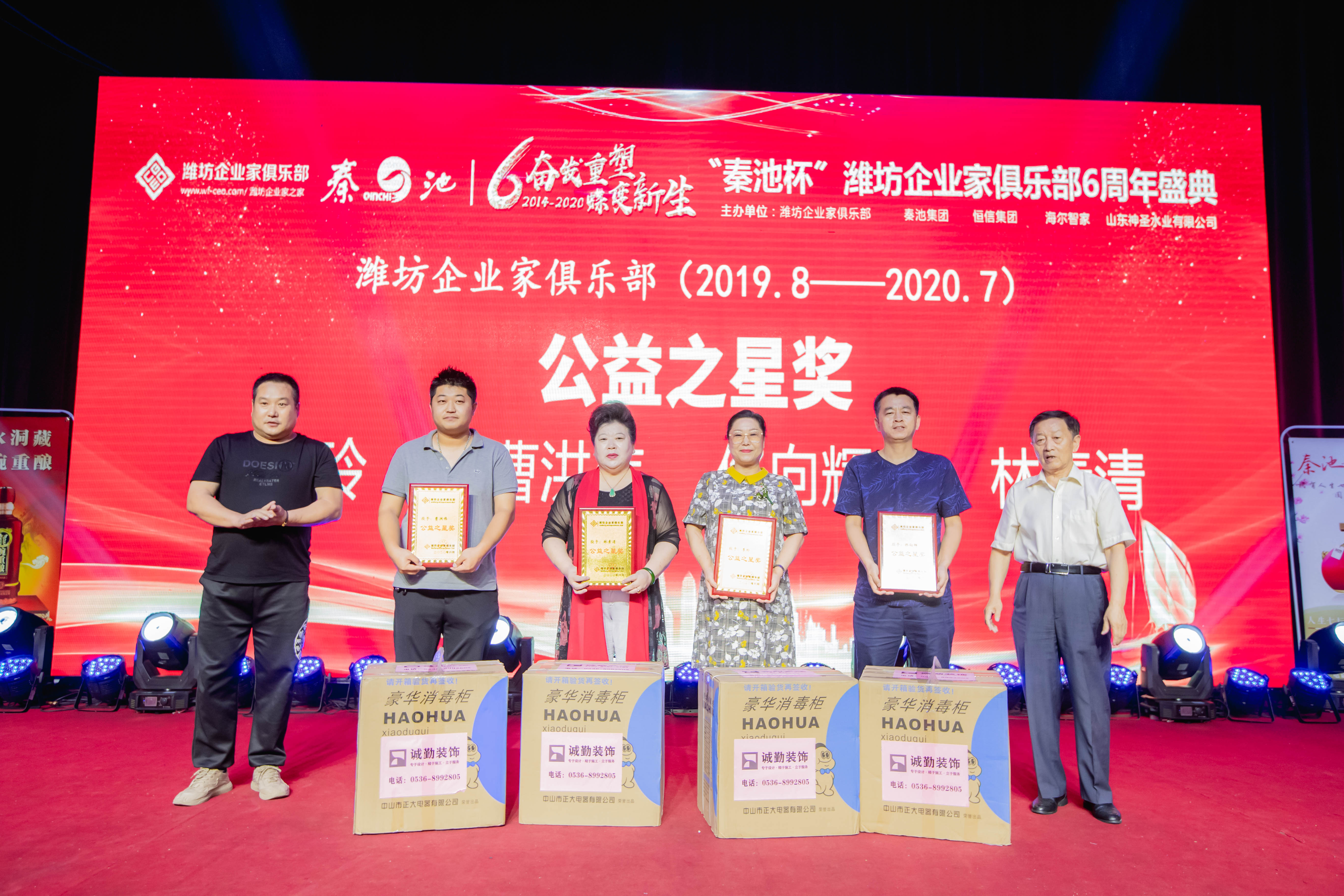 8月21日,由潍坊东方企业家俱乐部、秦池集团和恒信集团主办,山东艾琳智能科技有限公司承办,潍坊丰华(集团)公司、东方好莱坞国际娱乐连锁机构、邦泰地产、阳光融和医院、潍坊威龙电子商务科技有限公司、山东叁陆壹电子商务有限公司协办的奋发重塑·蝶变新生“秦池杯”潍坊东方企业家俱乐部六周年盛典晚会在新富佳悦大酒店成功举办。