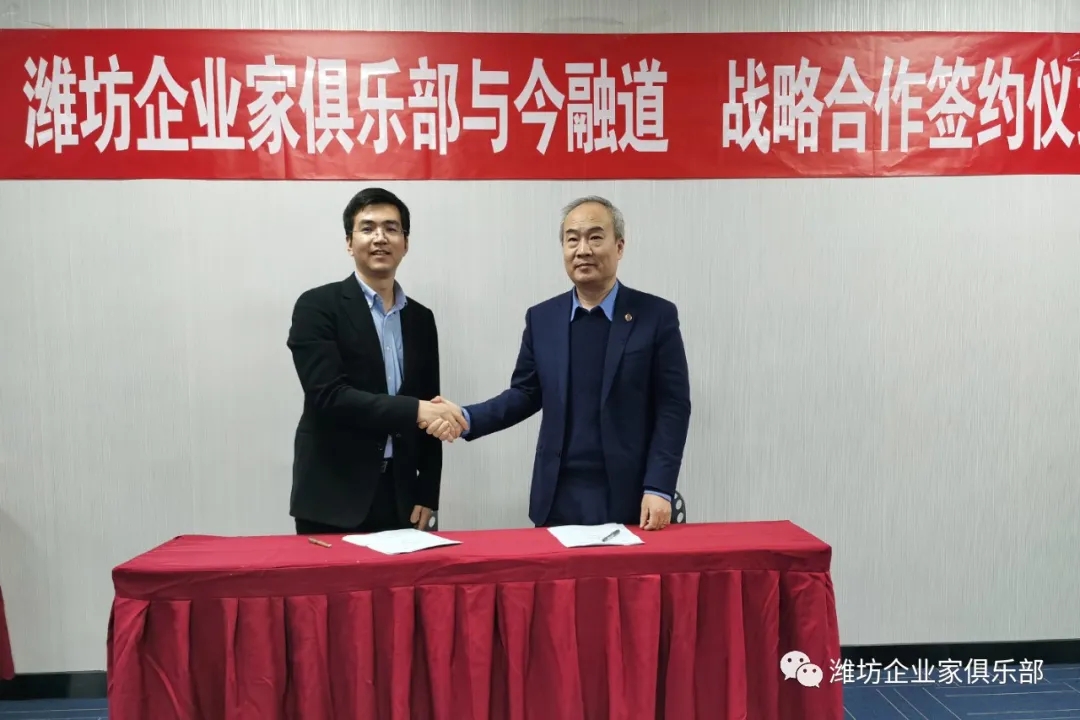 项目路演结束后,潍坊东方企业家俱乐部与今融道(北京)科技有限公司达成合作共识并签署战略合作协议。