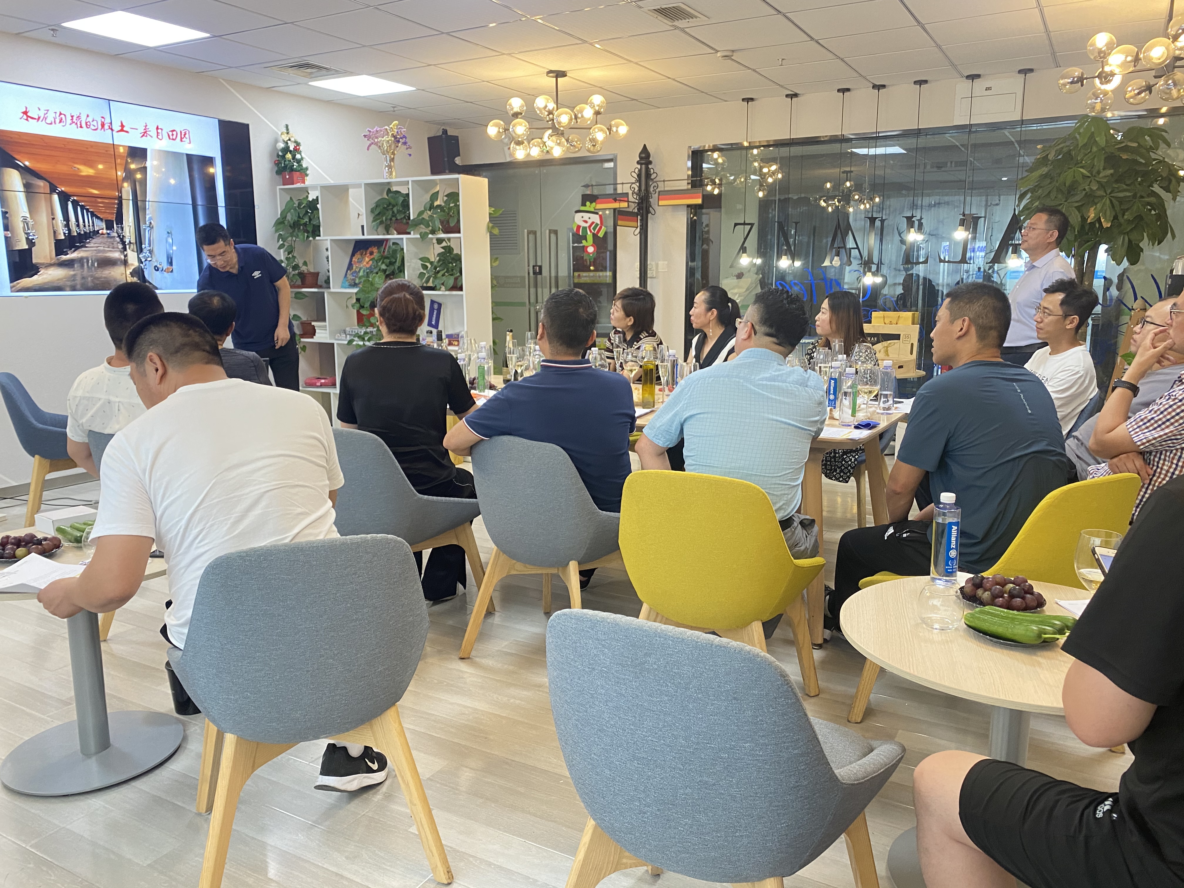 交流会上大家自我介绍并介绍公司,品鉴着美酒伴着美食,有说有笑,加深了彼此的了解,从认识到熟悉,从熟悉到熟知,不仅交流着工作中合作的机会也寻找到了爱好相同、志趣相投的同道中人。