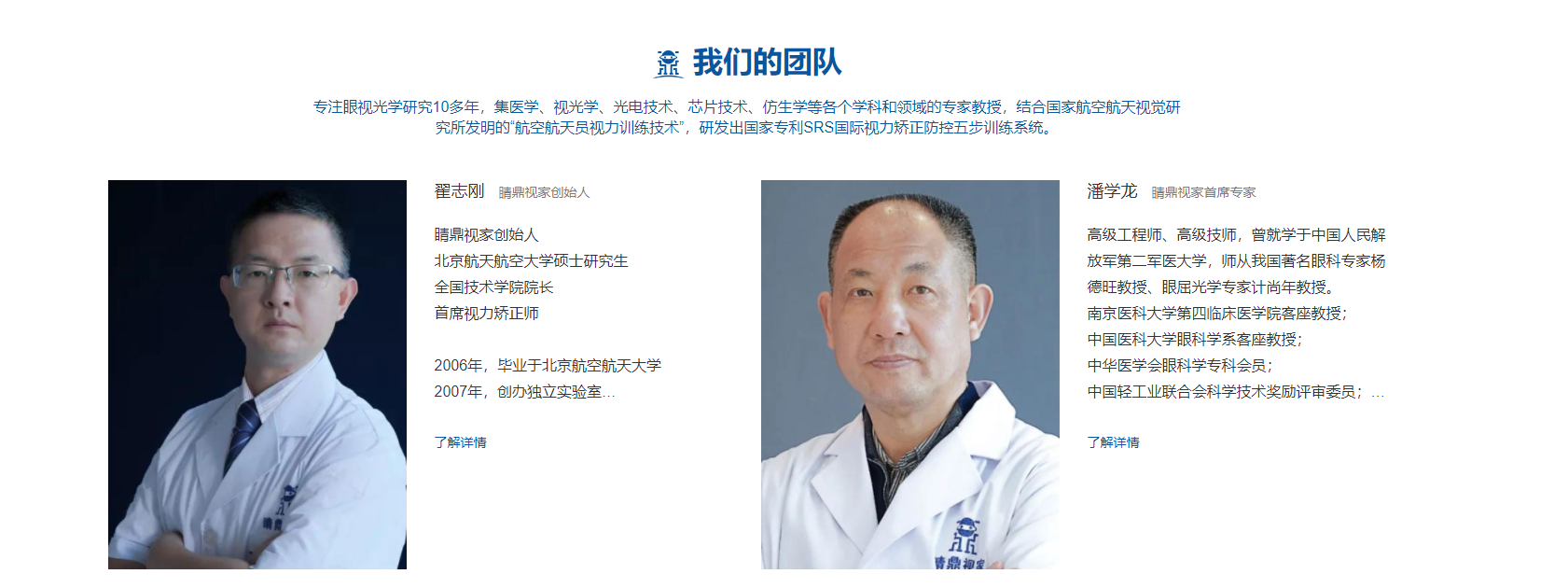 创始人翟志刚院长2006毕业于北京航空航天大学硕士研究生学位,专注眼视光学研究10多年,集医学、视光学、光电技术、芯片技术、仿生学等各个学科和领域的专家教授,结合国家航空航天视觉研究所发明的“航空航天飞行员视力训练技术”,研发出国家专利SRS国际视力矫正防控五步训练系统。SRS国际视力矫正防控五步训练系统是以“人体自修复功能”为核心、引入国际先进的设备技术、结合航空航天员视力防控保健法、科学搭配光学理疗仪进行“自适应、自恢复”的纯物理“光子视距提升训练、视域拓展训练、视觉敏锐度提升训练、光学能量矫正训练、屈光调节训练”的鼎级五步矫正防控训练法,来恢复眼睛自身的生理机能,改善视功能。不打针、不用药、不接触眼睛、纯物理训练100%安全有效防控反弹。