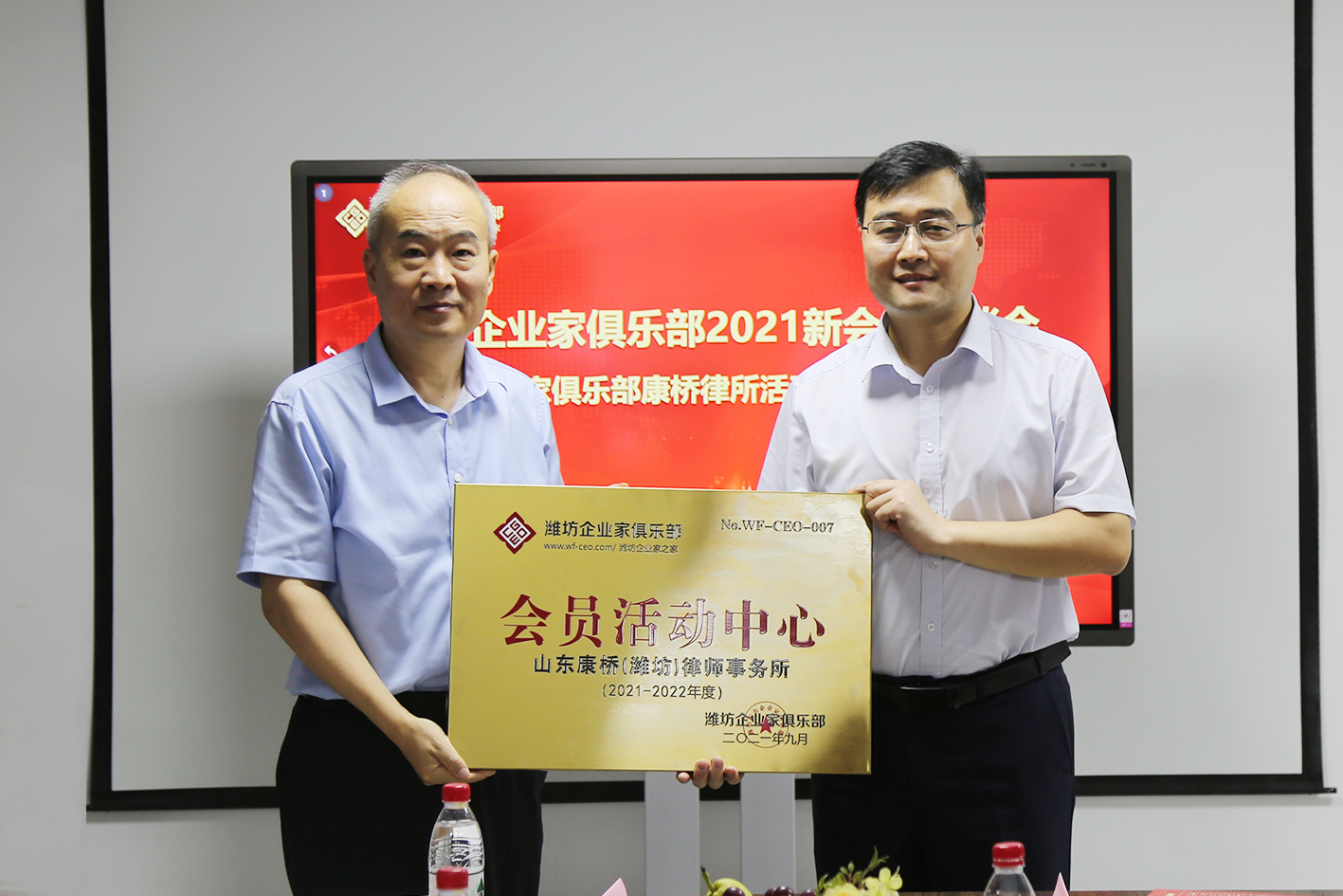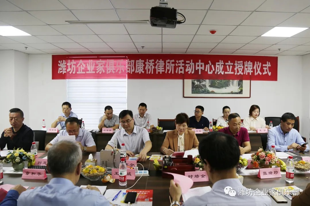 9月30日,潍坊东方企业家俱乐部2021新会员座谈会暨潍坊东方企业家俱乐部康桥律所活动中心成立授牌仪式在理事单位山东康桥(潍坊)律师事务所成功举办。