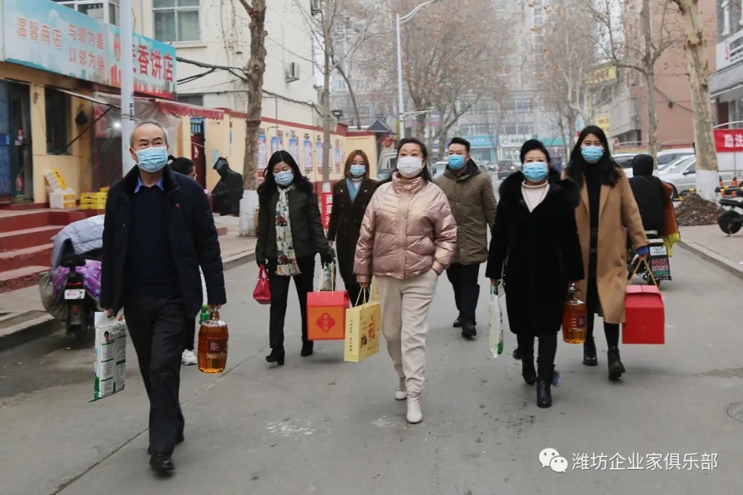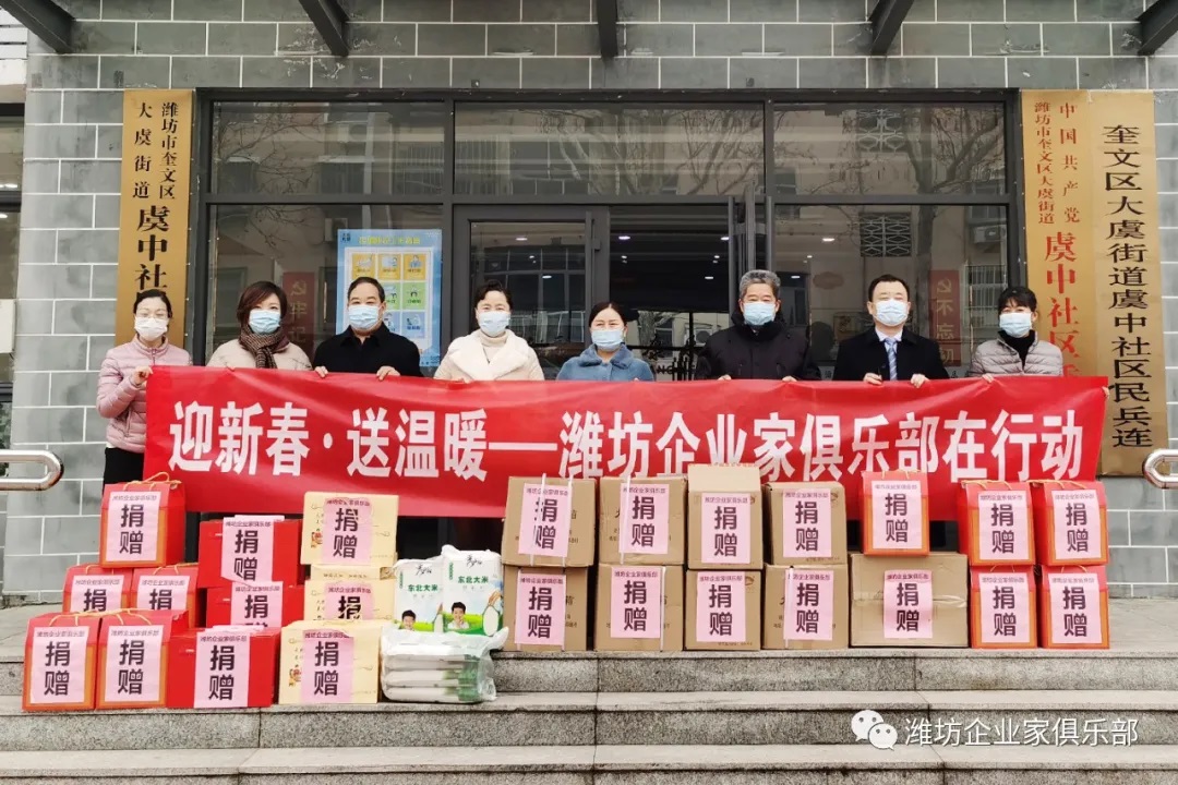 2021年1月22日下午,潍坊东方企业家俱乐部组织部分企业家会员走访了大虞街道与东关街道的部分困难家庭,为他们送去生活、防疫物资与新春的祝福。
