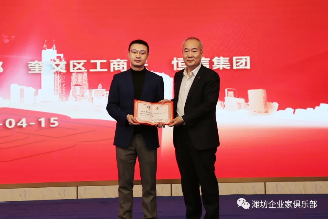 为加强企业融资和转型升级能力,充实平台服务力量,特聘请张奥平先生为潍坊东方企业家俱乐部企业管理服务高级顾问,王大威会长为张奥平老师颁发顾问聘书。