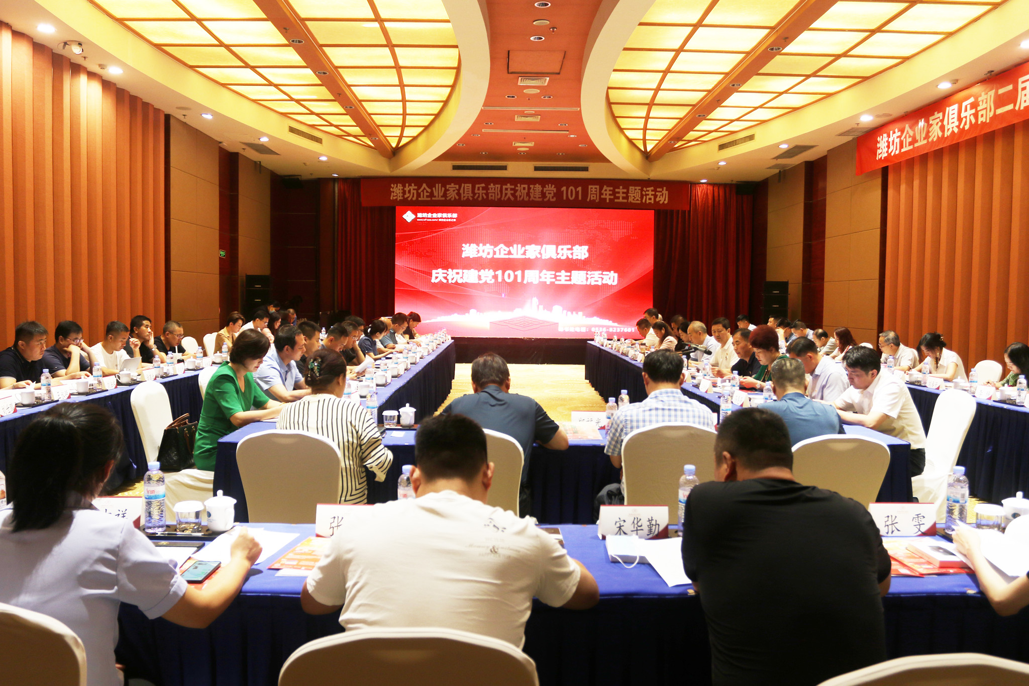 不忘初心,牢记使命。7月2日,潍坊东方企业家俱乐部举办庆祝建党101周年主题活动。潍坊市工商联党组成员、副主席谭述霞以及潍坊东方企业家俱乐部会长王大威,各常务会长和部分理事会成员等80余人参与活动。
