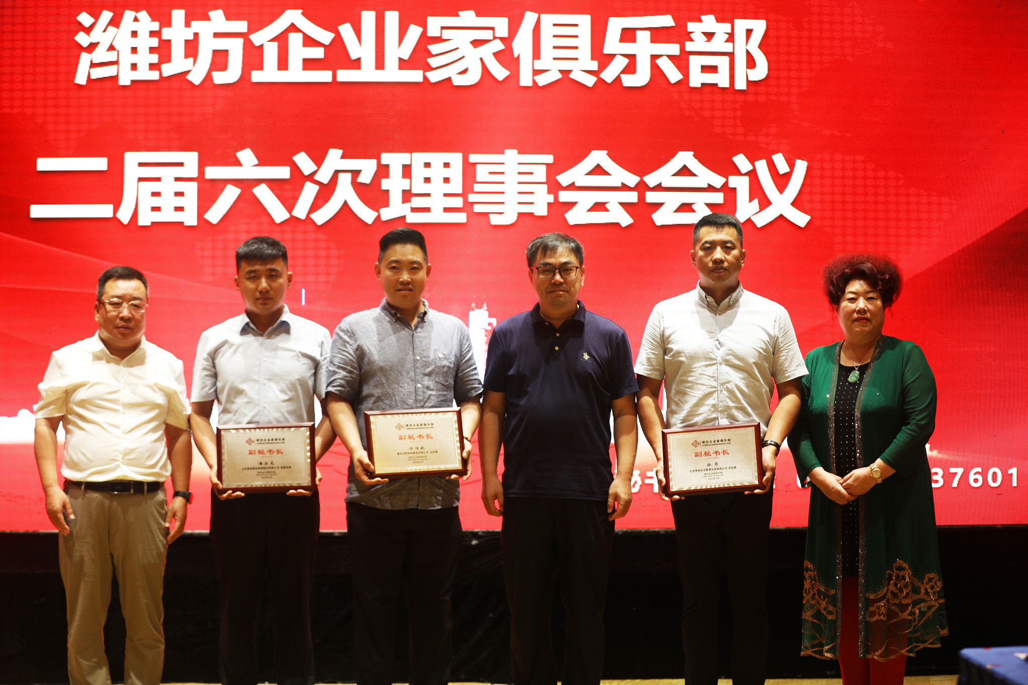 7月2日,潍坊东方企业家俱乐部二届六次理事会会议在新富佳悦大酒店召开。潍坊东方企业家俱乐部部分顾问团成员,荣誉会长张玉强,会长王大威,常务会长韩宝晶、王超、程亚利、李玲、刘金富、韩绍毅、陈丹、王洪玲、齐恩亮,监事长孙建文以及潍坊东方企业家俱乐部各副监事长、副会长、常务理事、理事等80余人参会。