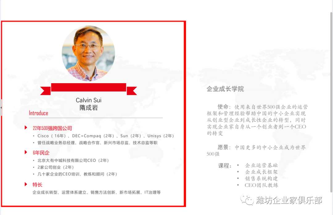 潍坊东方企业家俱乐部服务平台企业管理高级顾问:隋成岩先生