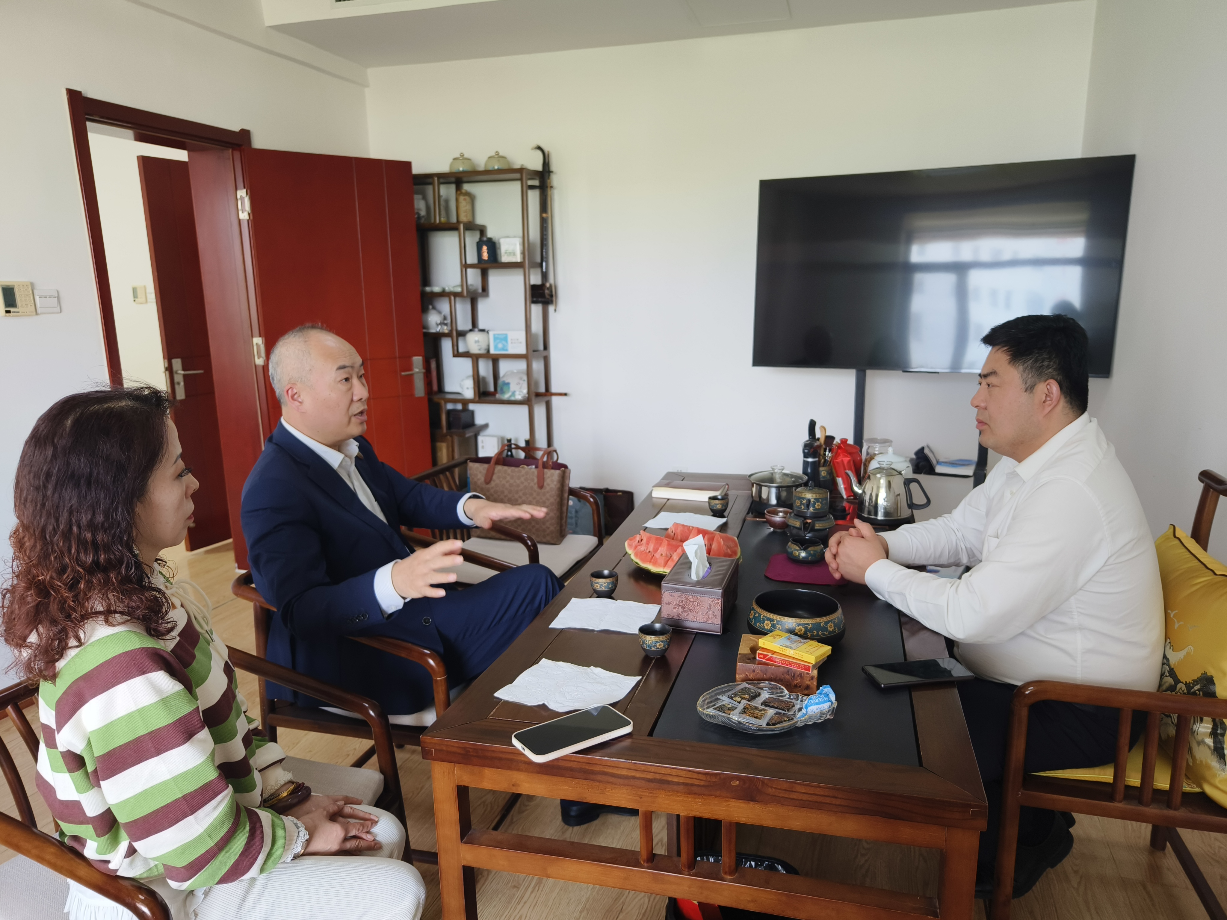 刘总带领大家参观公司环境、简介公司业态及近期开展业务情况之后,举行座谈。刘总表示,自加入潍坊东方企业家俱乐部以来,对于潍坊东方企业家俱乐部开展的活动都很认可并希望深入参与其中,申请成立“潍坊东方企业家俱乐部吉涛医学活动中心”,用自己专业领域知识服务会员健康。会长也希望刘总可以积极参与到建设平台的队伍中来,成立活动中心用专业服务会员,众人拾柴火焰高,对于平台的建设并非一人、一家之事,是众人之事。