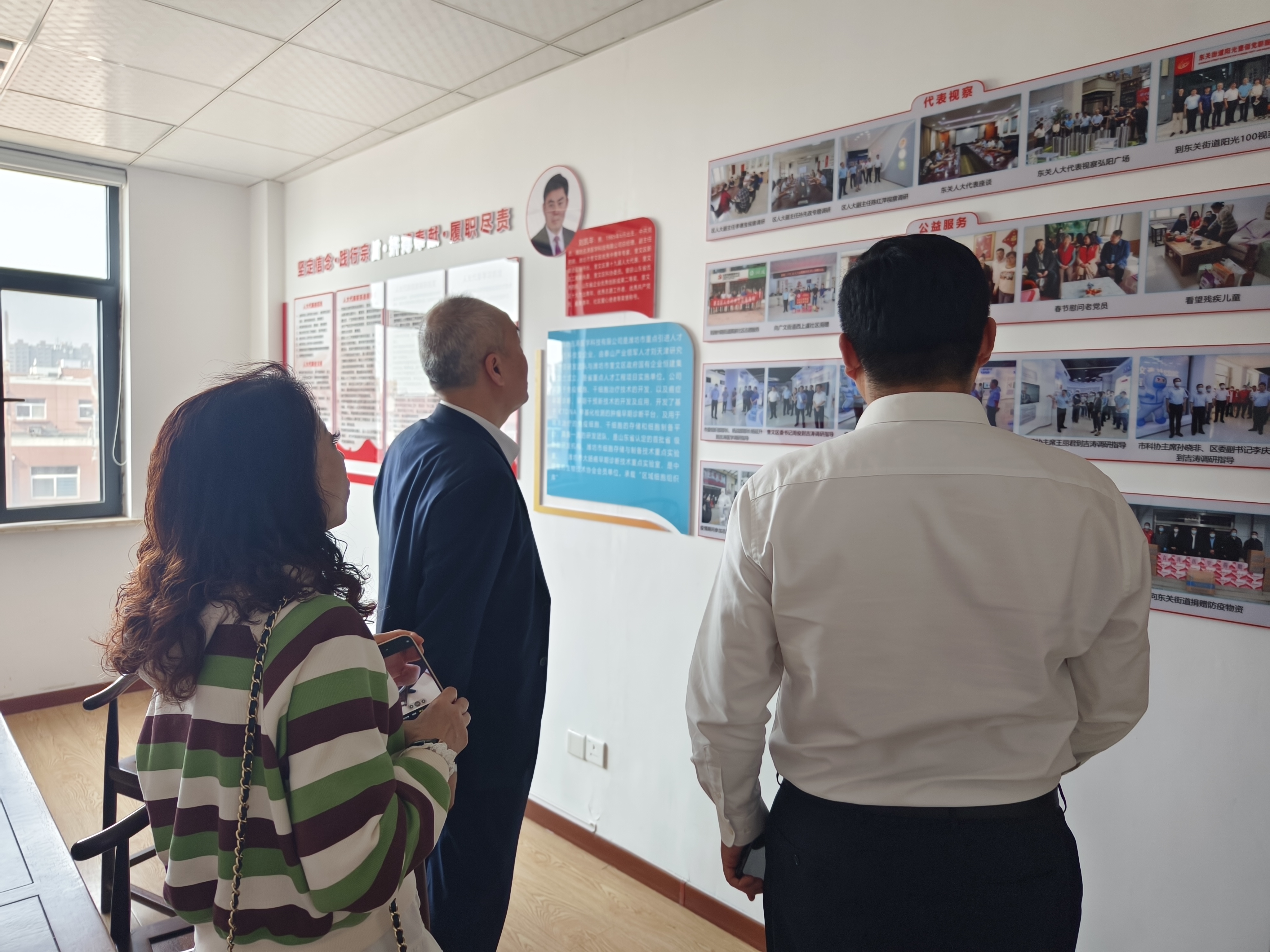 会长王大威,副秘书长、潍坊平安综合金融集团奎文支公司经理林素梅,执行秘书长张帅帅等参与活动。理事、潍坊吉涛医学科技有限公司总经理刘凯年热情接待。