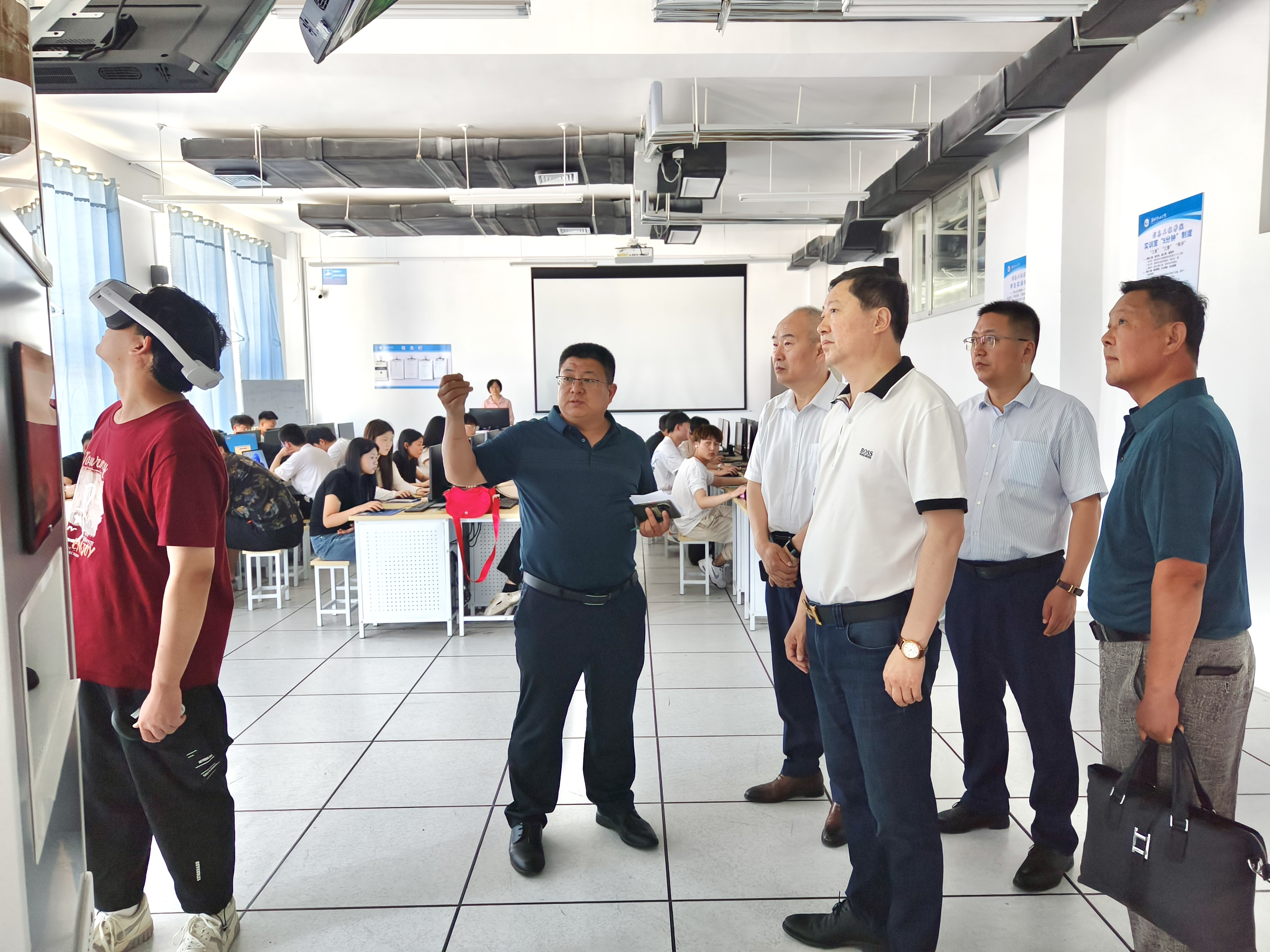 刘德强副院长向潍坊东方企业家俱乐部一行介绍了学院概况与软硬件建设情况,学院在工作中深化产教融合,建设“产学研创”实训基地,并表示愿意与潍坊东方企业家俱乐部进一步合作,与潍坊东方企业家俱乐部会员企业联动,促成校企双方在学生就业、项目开发与研究等方面的合作,实现生产教学互融共研、共建共享。