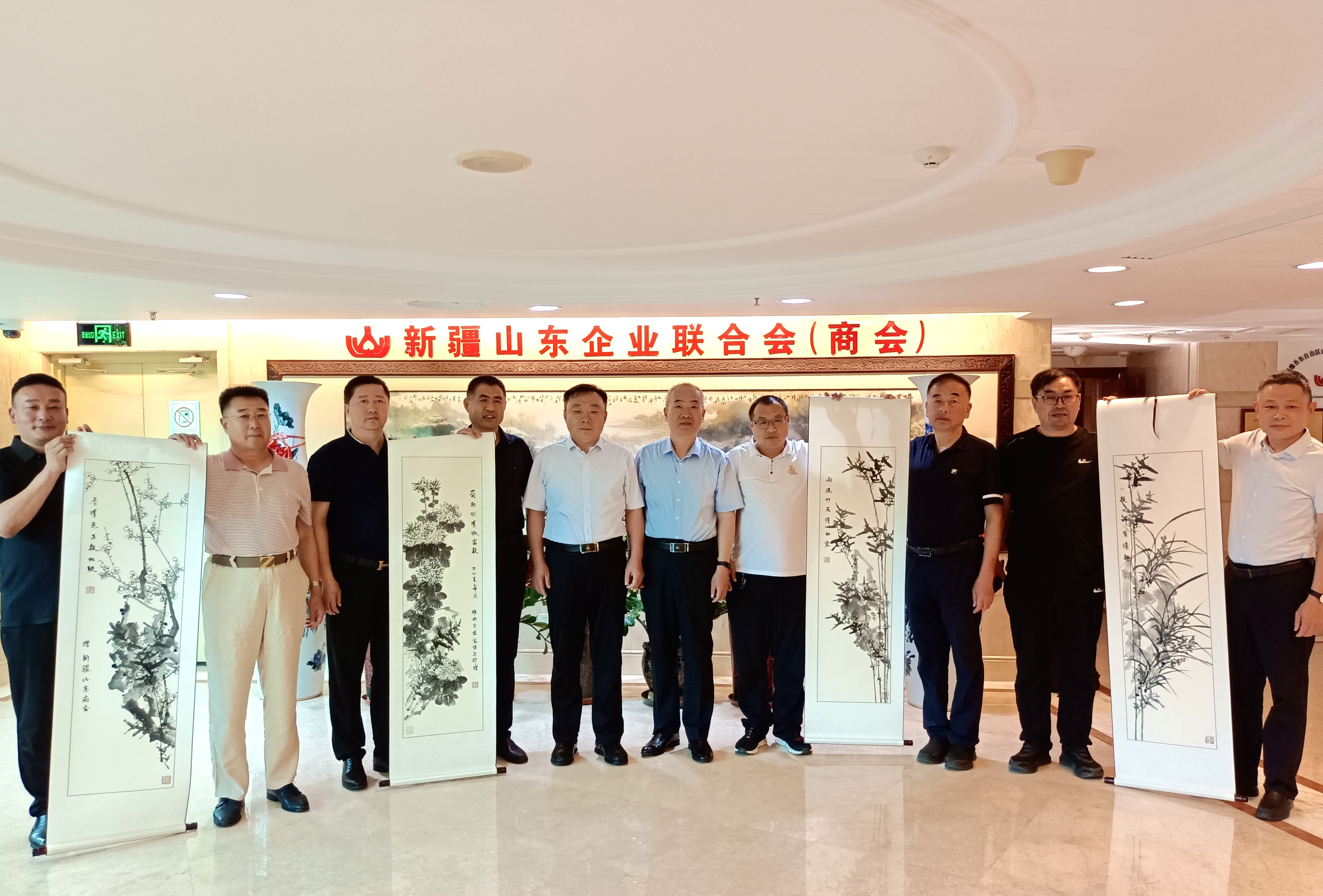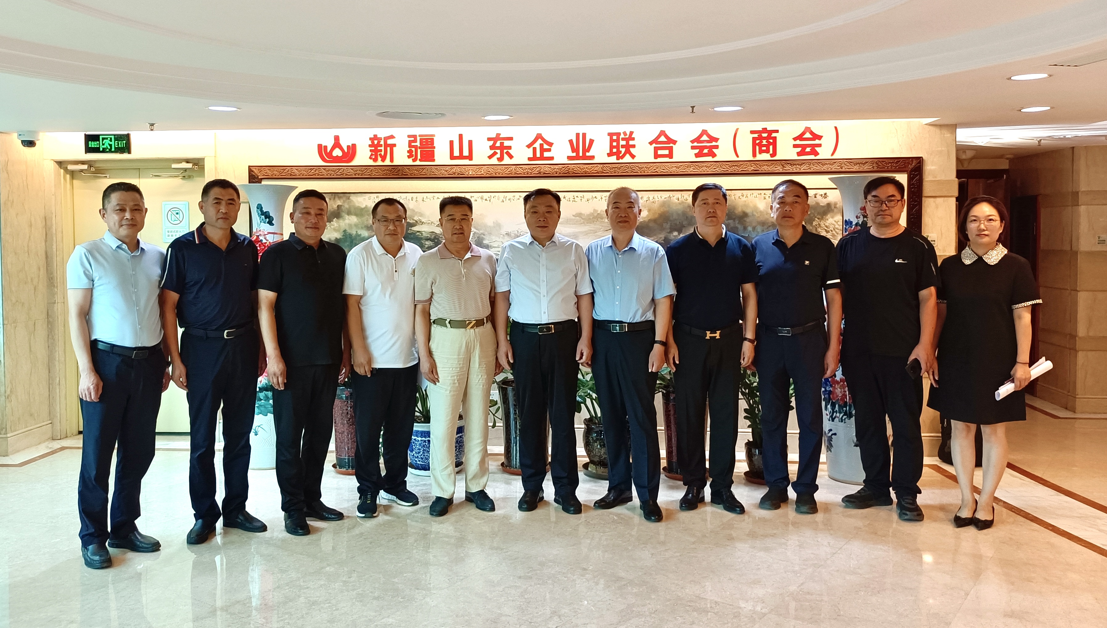 新疆山东企业联合会会长、新疆大华投资有限公司董事长张保华、监事长乔培玉(新疆名匠酒业有限公司总经理)、常务副会长兼党支部书记孙建斌(新疆乐化涂料有限责任公司总经理)、常务副会长李金兰(新疆万昌新能源有限公司董事长)以及副会长马智(新疆天成鲁源电器工程有限公司总经理)热情接待了潍坊东方企业家俱乐部一行。