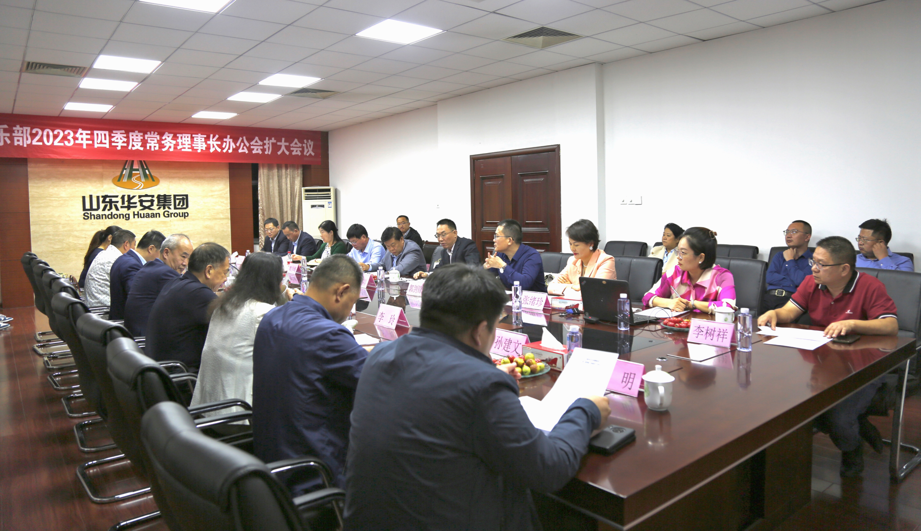 理事长王大威,常务理事长:潍坊恒信集团副总裁韩宝晶、潍坊丰华(集团)公司董事长程亚利、山东北方文化艺术品有限公司董事长张光文、山东永博文化创意集团公司董事长李玲、山东华安集团有限公司执行总裁侯洪祥、瀚宸(山东)控股集团有限公司董事长孙志娟,监事长、山东乐化铝塑制品有限公司总经理孙建文,副理事长:山东衡明律师事务所主任杨春恒、山东润士通文化传媒有限公司总经理郭剑锋、山东致恒儒雅企业管理咨询有限公司总经理王文华、潍坊龙创知识产权代理有限公司总经理李树祥、山东秦池酒业有限公司副总经理魏学峰、潍坊启翔泰山名饮有限公司总经理张绪珍,执行秘书长张帅帅,副秘书长:华安集团峡山园区副总经理樊泽选、山东冬为通讯服务有限公司经理佟向辉、赵明,理事:山东文康(潍坊)律师事务所主任徐中华、山东夏熙语服饰有限公司总经理夏涛、潍坊鸿慈同康经贸有限公司总经理刘宗秀及好莱坞文投集团总经理王明、众智集团有限公司办公室主任刘玉花等部分常务理事长代表及理事会代表等参与此次会议。