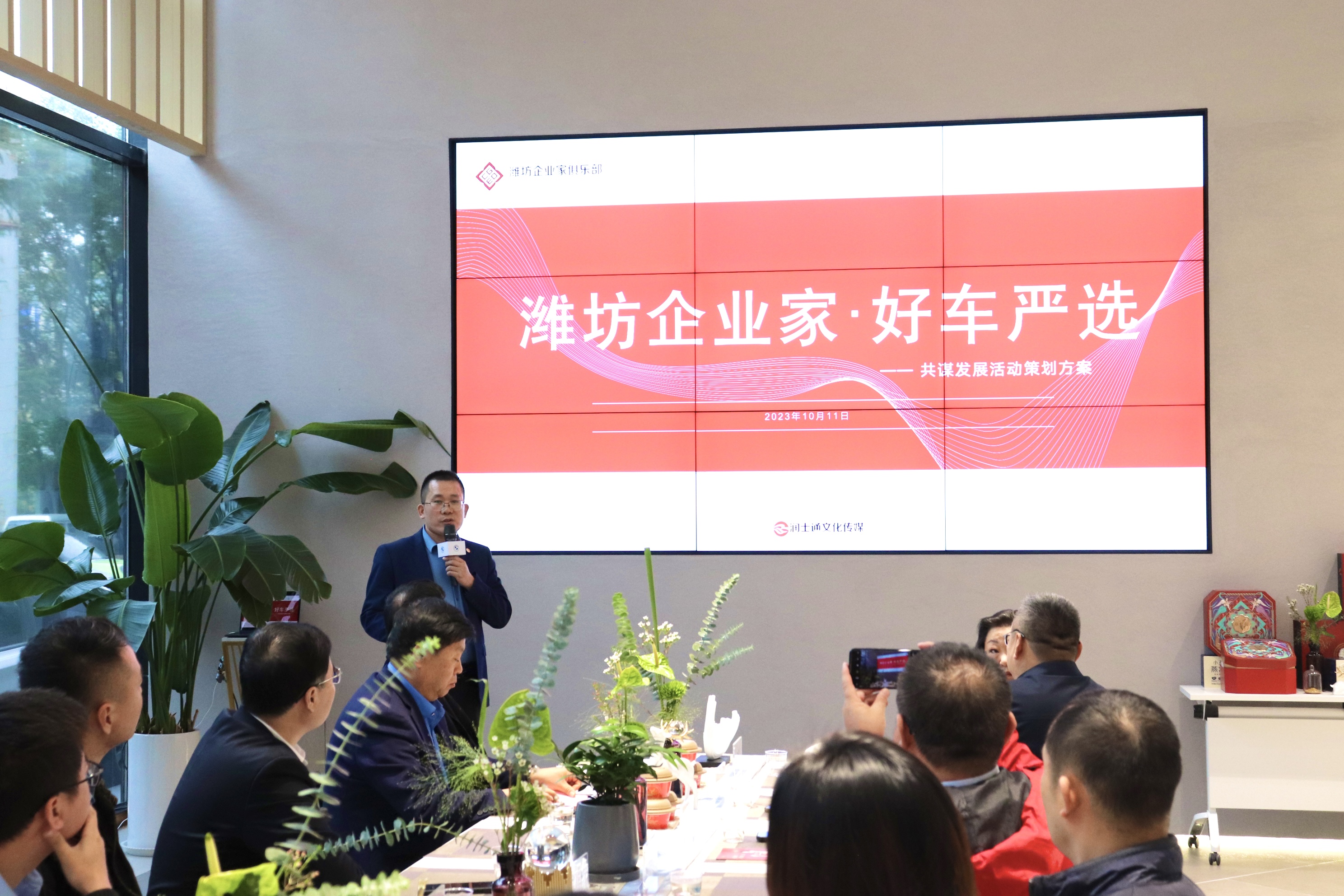 潍坊东方企业家俱乐部11月轮值副理事长郭剑锋为大家详细介绍“好车严选”系列活动的宗旨、目的及活动表现形式。希望在此系列的活动中,各位同仁可以达成跨界合作、资源互补的共赢局面。