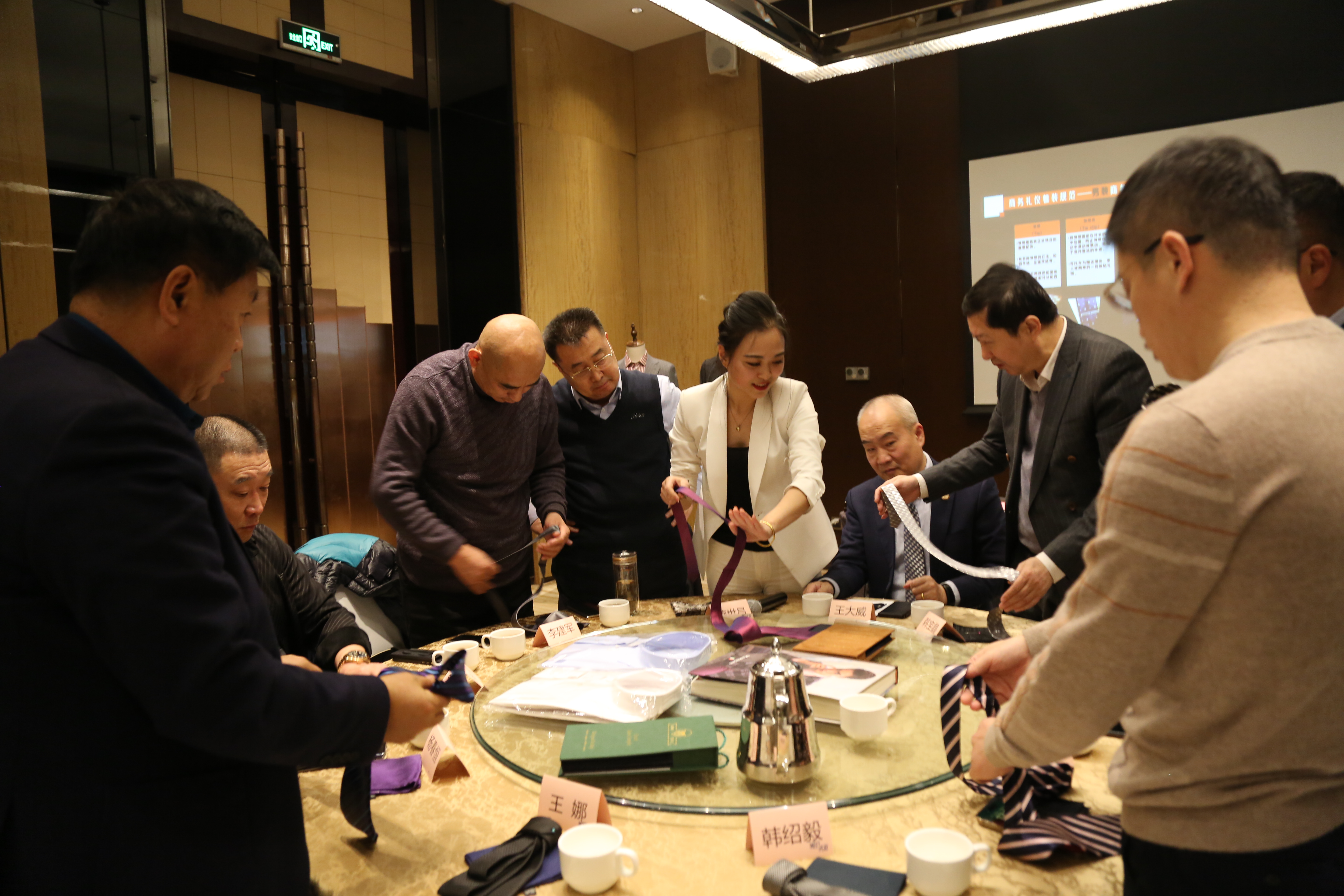 潍坊东方企业家俱乐部诗得莱斯活动中心邀请到CMC国际注册高级服装设计师、国际注册形象管理咨询师李欣为大家分享国内外不同风格、不同场合的穿搭风格与穿搭思路,将不同款式细节一一呈现给大家,手把手教学领带、方巾的不同系法,寓教于乐,大家纷纷表示收获满满。