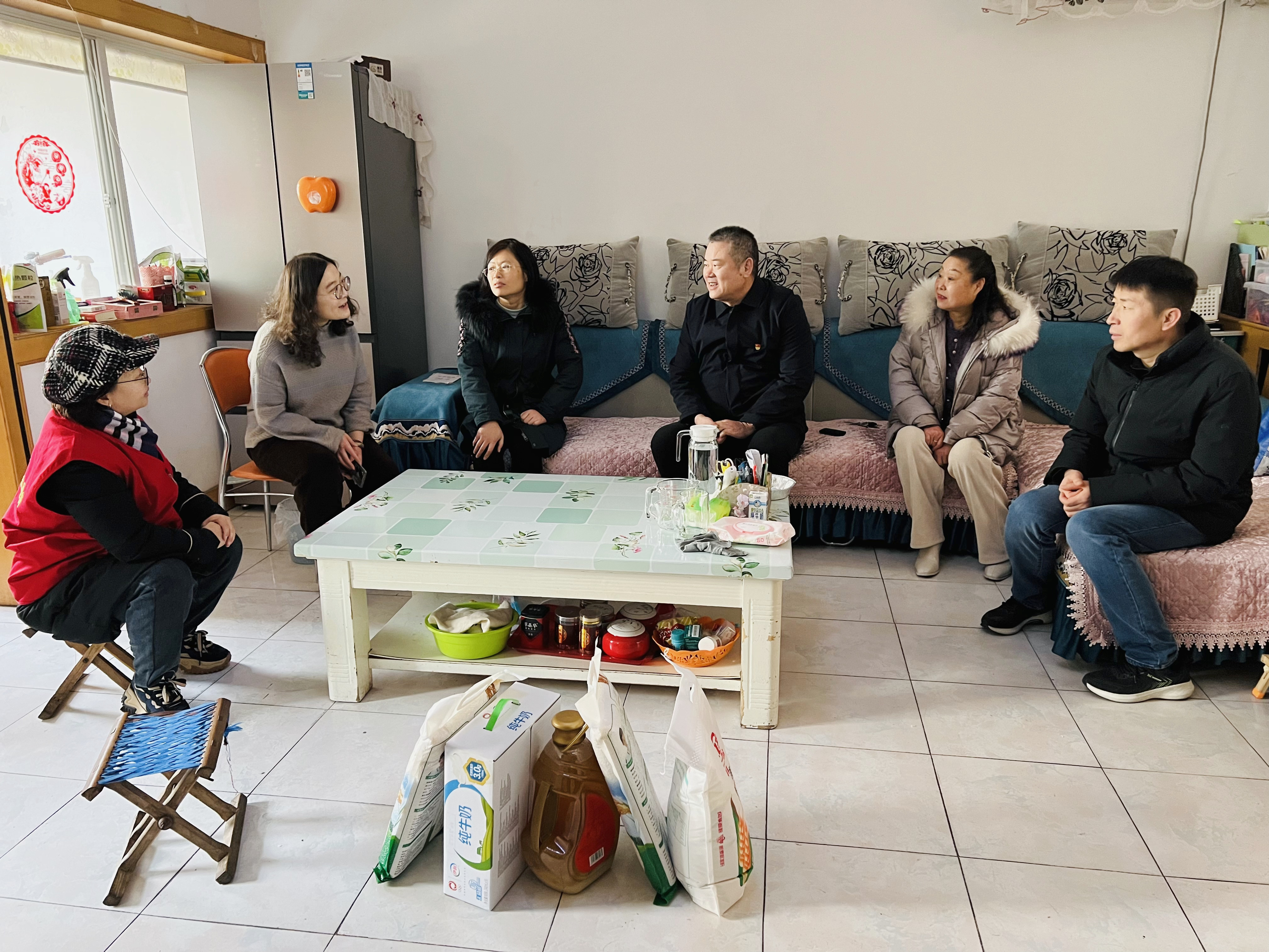 走访中,活动组与社区困难群众通过“拉家常”的方式,详细了解家庭生活情况、身体健康状况等,仔细听取大家对社区发展的建议,并为他们送上食用油、米面和牛奶等生活物资,叮嘱他们保重身体,保持积极向上的乐观心态面对生活。