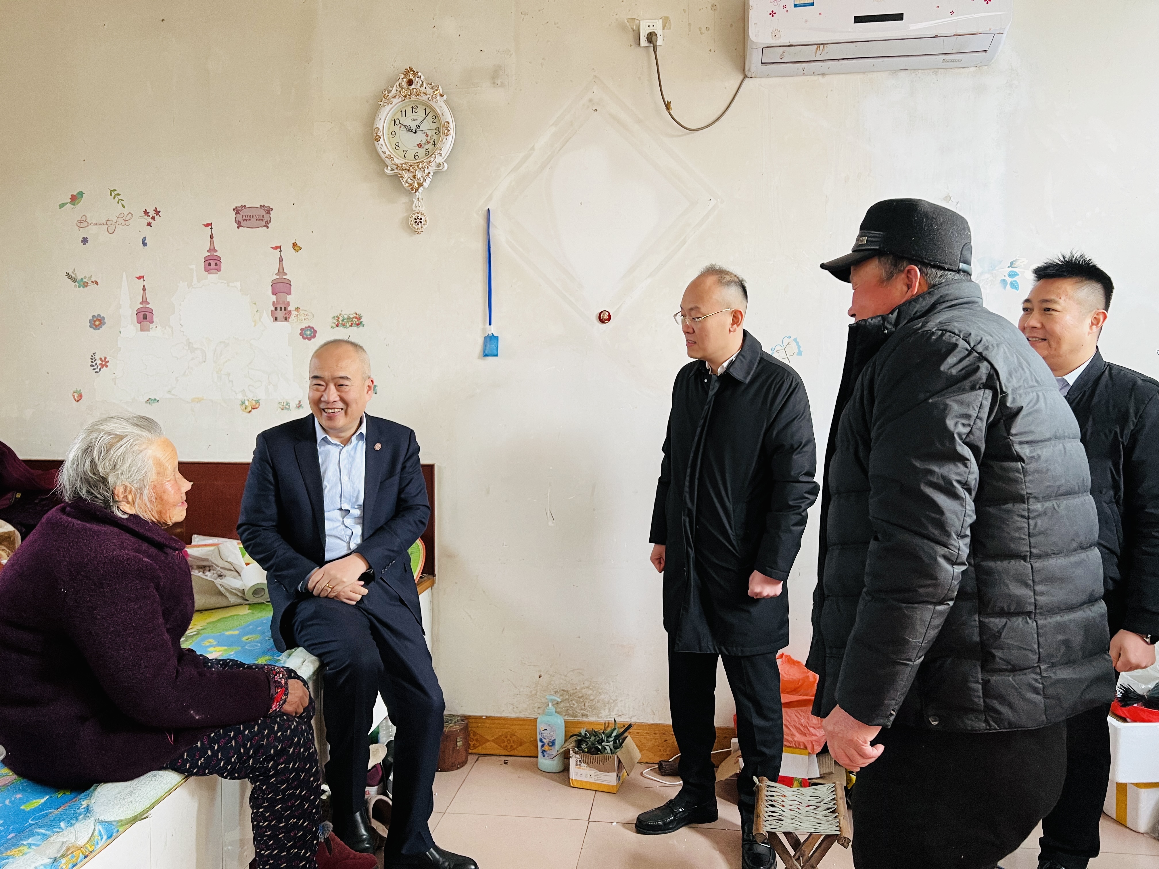 走访队伍带着米、面、奶、油等生活物资到困难群众家里去,同他们亲切交谈,详细了解他们的生活情况和身体状况,叮嘱他们一定要保重身体,并向他们致以节日的问候和美好祝愿。