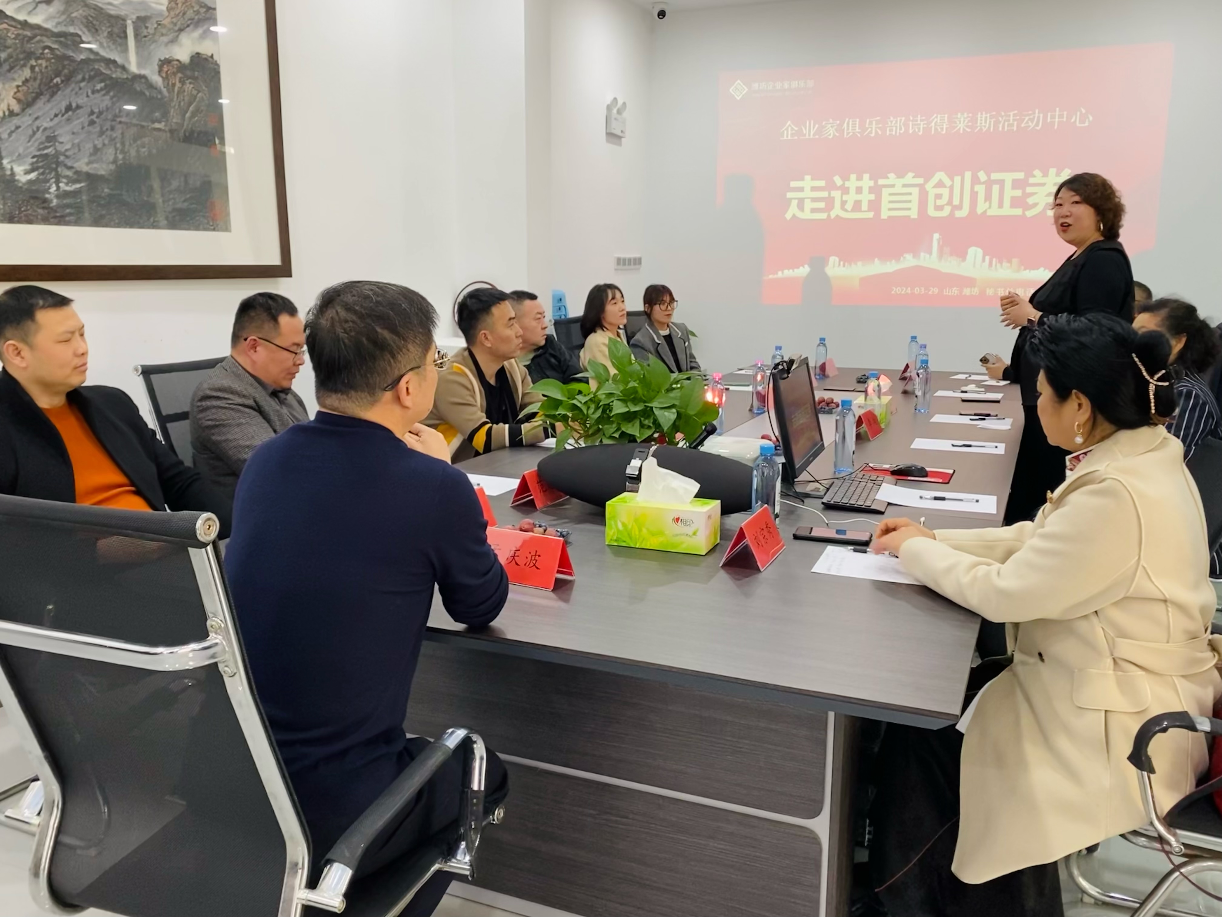 3月29日下午,潍坊东方企业家俱乐部诗得莱斯活动中心组织走进首创证券潍坊营业部。