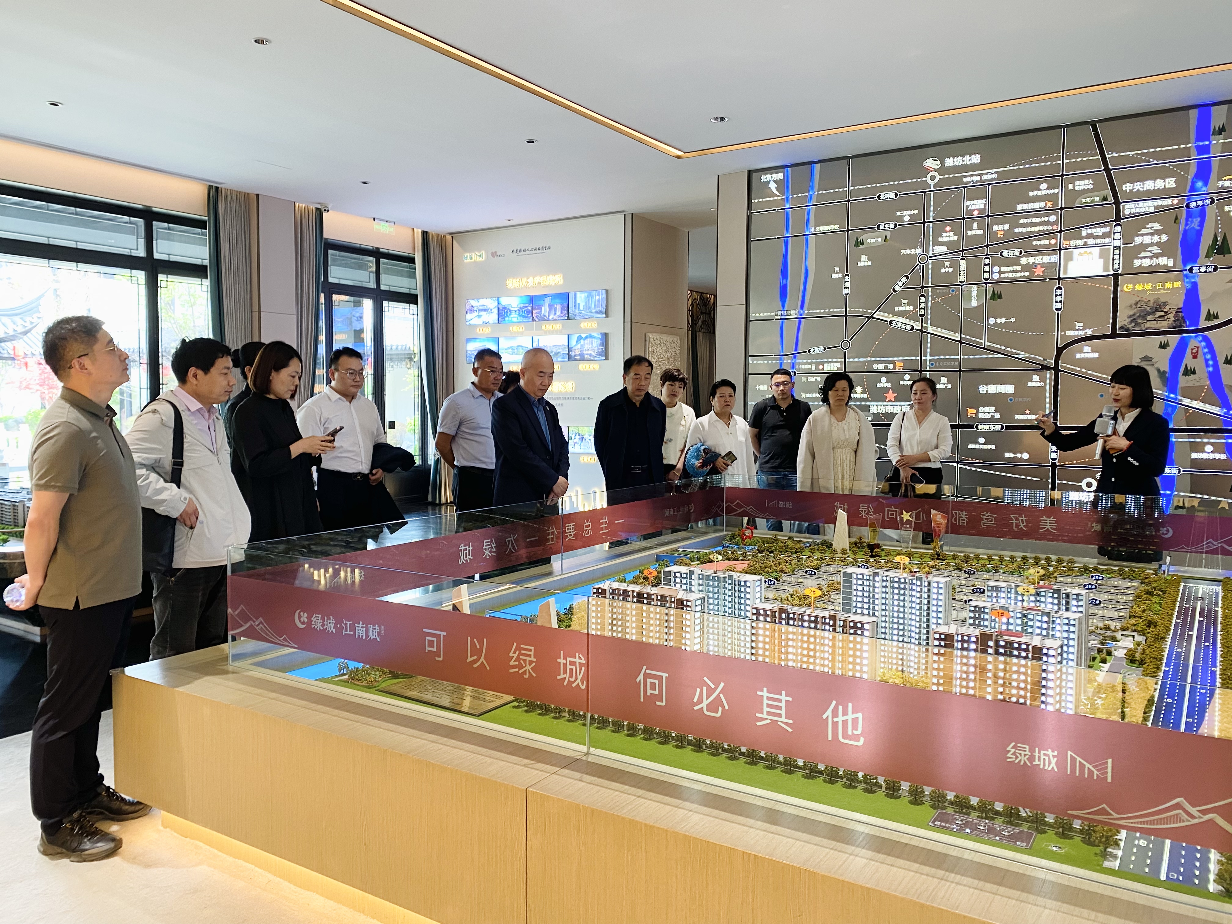 活动伊始,与会企业家们先在绿城·江南赋项目售楼处集合,参观并了解了该项目的详细情况。