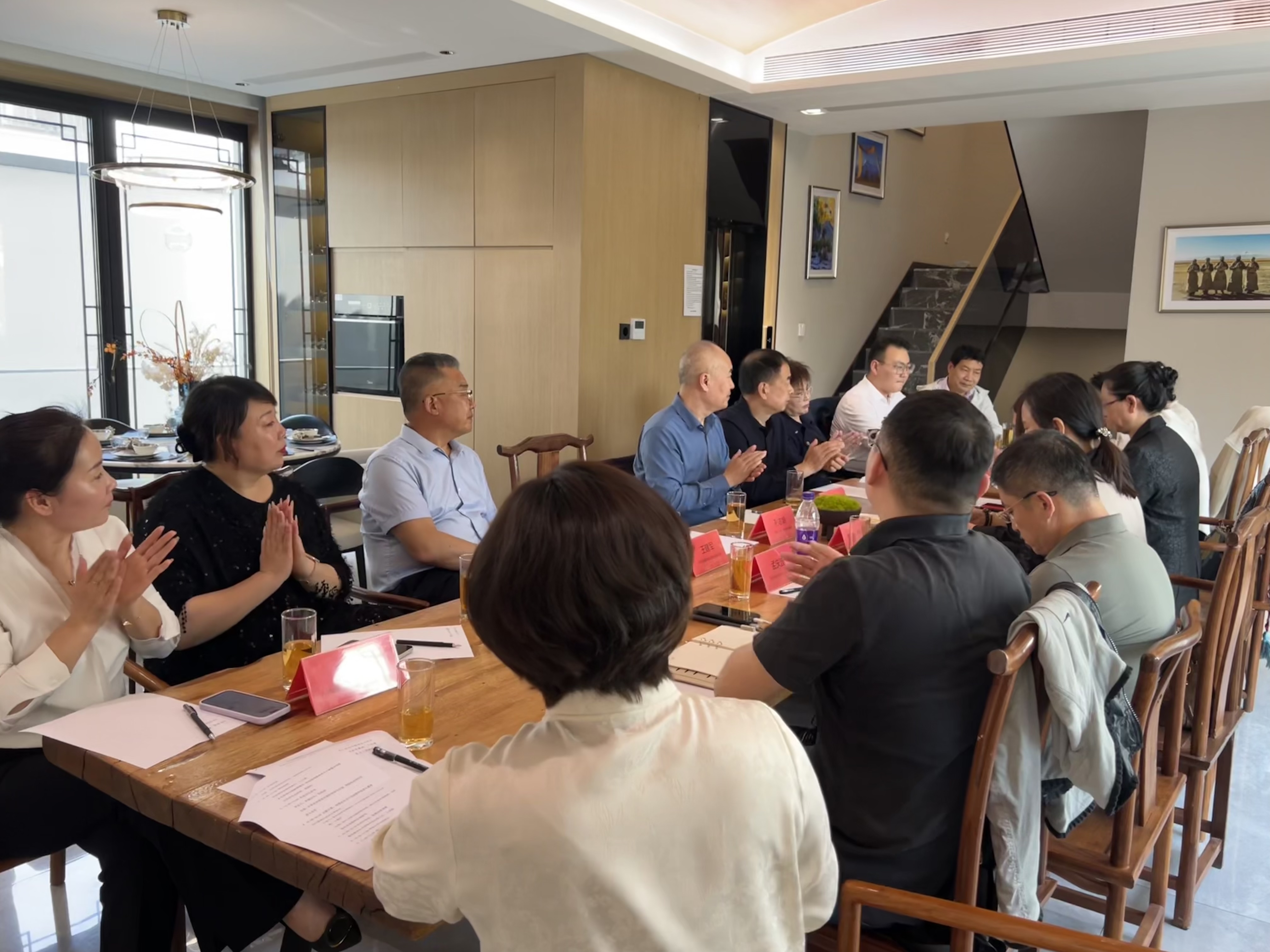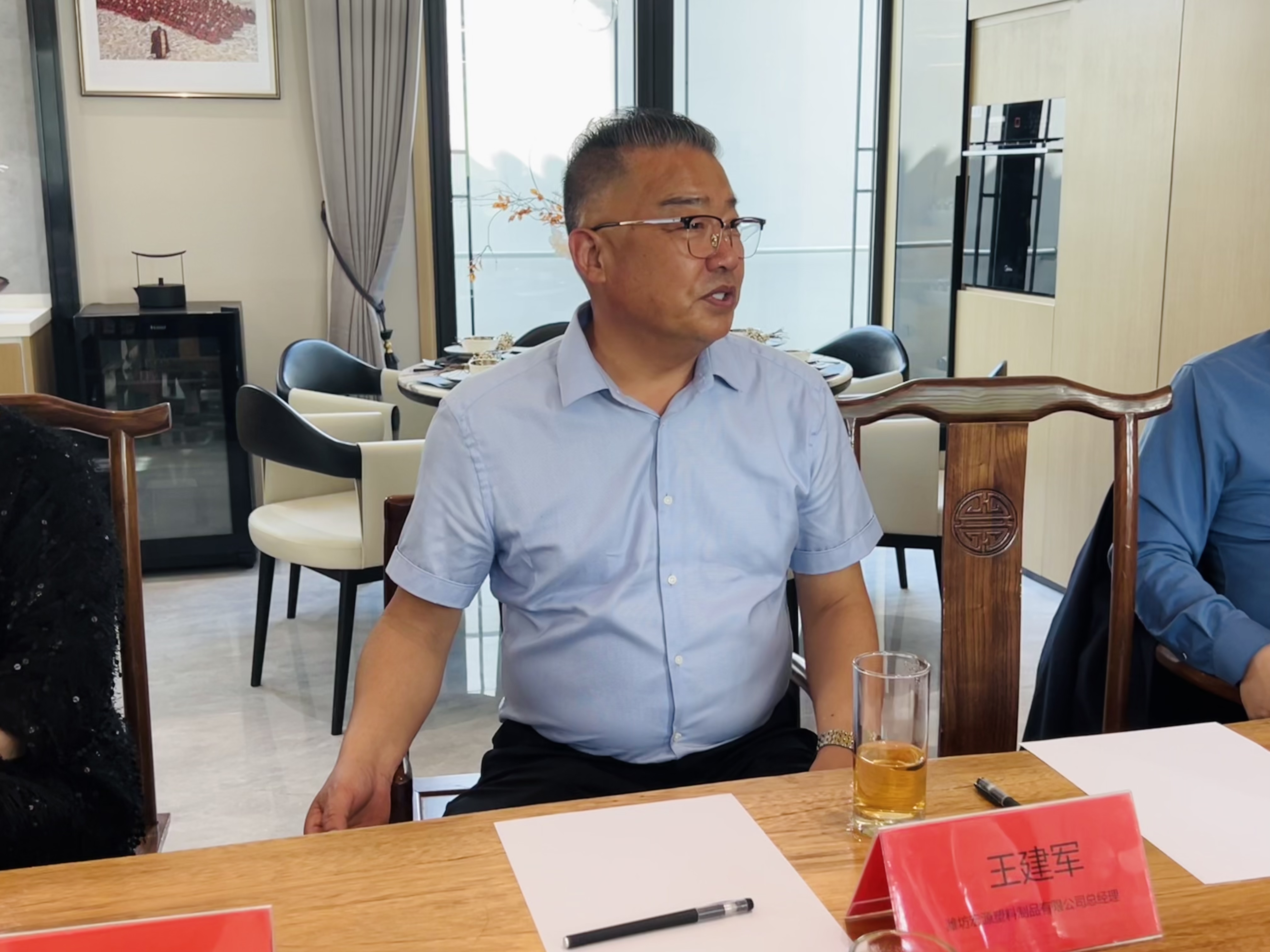 潍坊东方企业家俱乐部副理事长、潍坊蓝城桃李奔月小镇置业有限公司项目总经理周瑞玲对于各位企业家的到来表示热烈欢迎,她向大家介绍绿城·江南赋项目的特点与优势并欢迎大家经常来做客,她说作为潍坊东方企业家俱乐部的会员活动中心很开心大家能来此一起讨论外贸相关的问题与经验,希望大家今天能聊的愉快、谈的开心,成为彼此赋能的好伙伴。