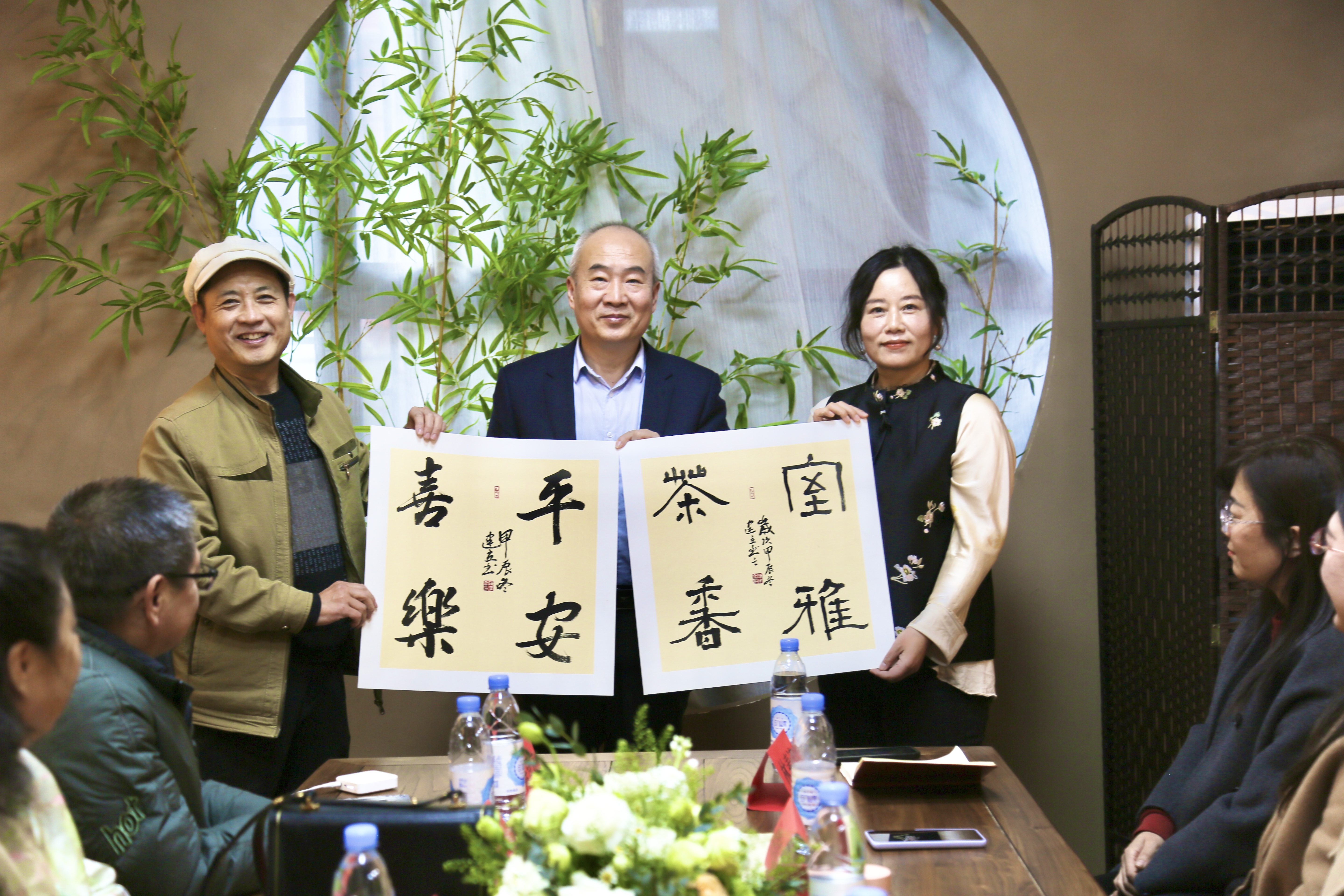 副秘书长陈建立赠送书画作品。与会人员纷纷发言,对潍坊东方企业家俱乐部“竹贤茶社”活动中心的成立表示祝贺并分享了各自企业的发展近况。