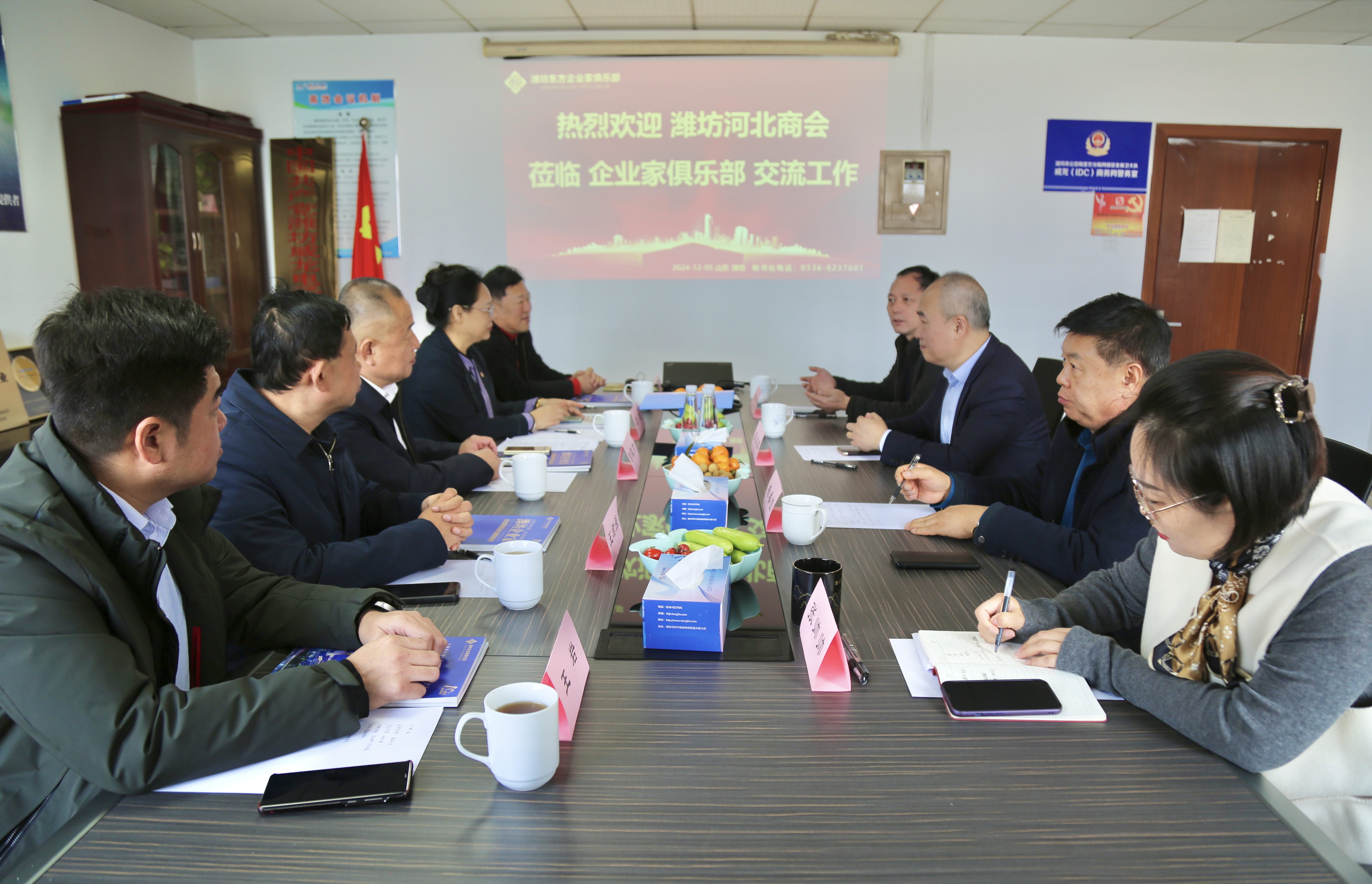 12月5日,潍坊河北商会会长宫敬才,常务副会长刘君,秘书长王君强,副会长周夫顺、王岩等回访潍坊东方企业家俱乐部进行对接合作。