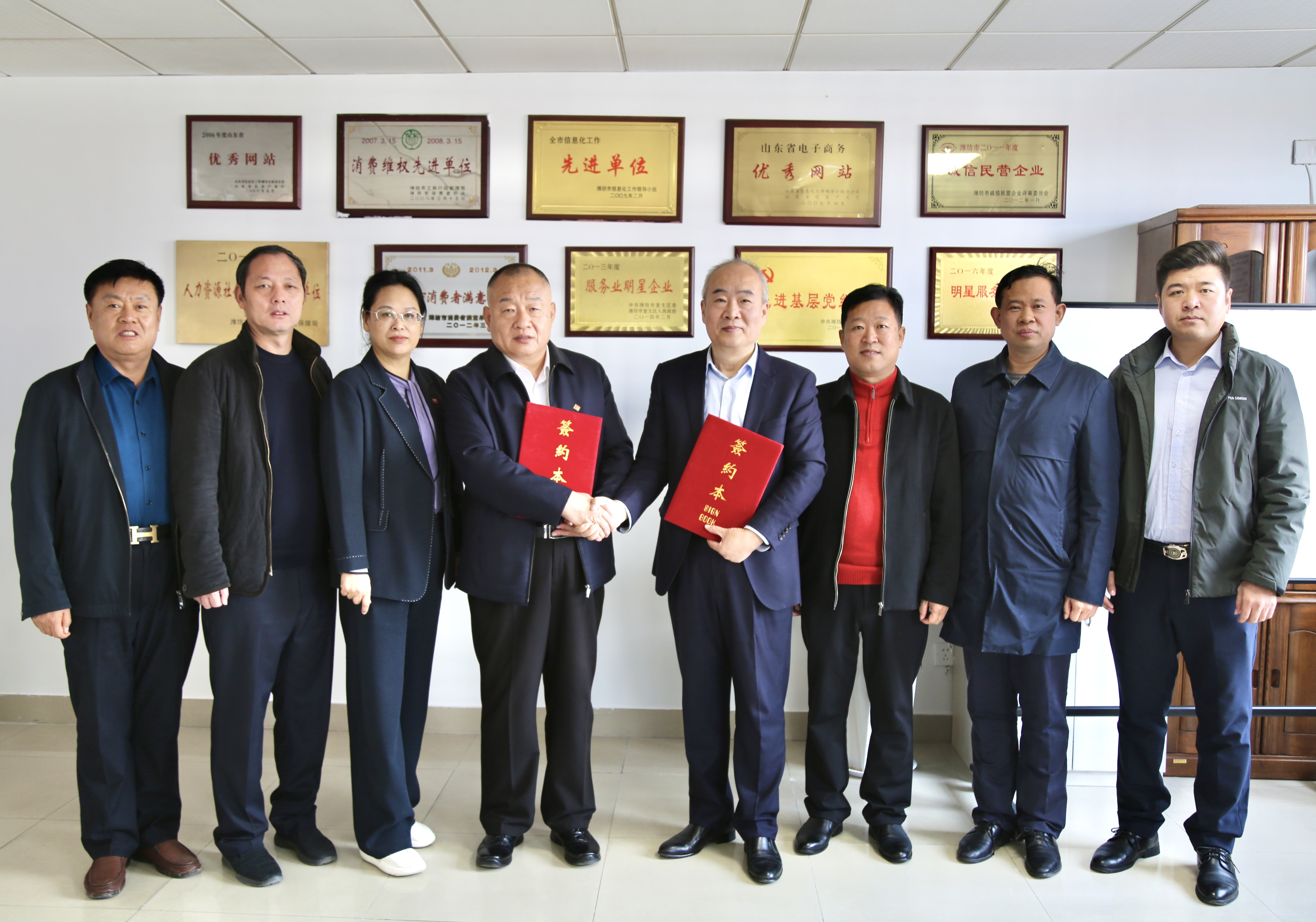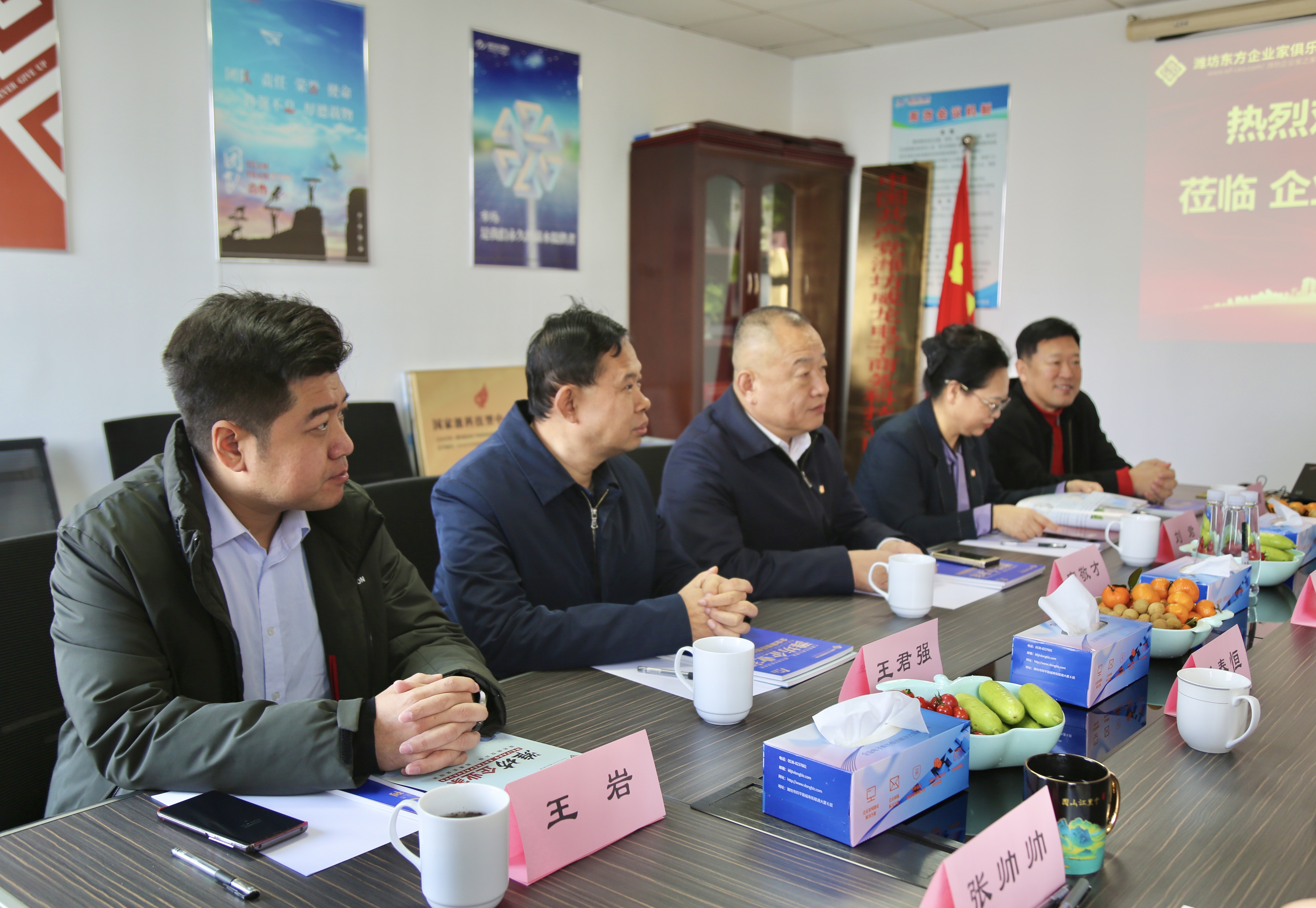 潍坊东方企业家俱乐部理事长王大威,常务理事长、山东衡明律师事务所主任杨春恒,副理事长、潍坊奎文口腔医院院长章和平、山东鑫达鲁鑫防水材料有限公司总经理孙美峰,执行秘书长张帅帅作热情接待。