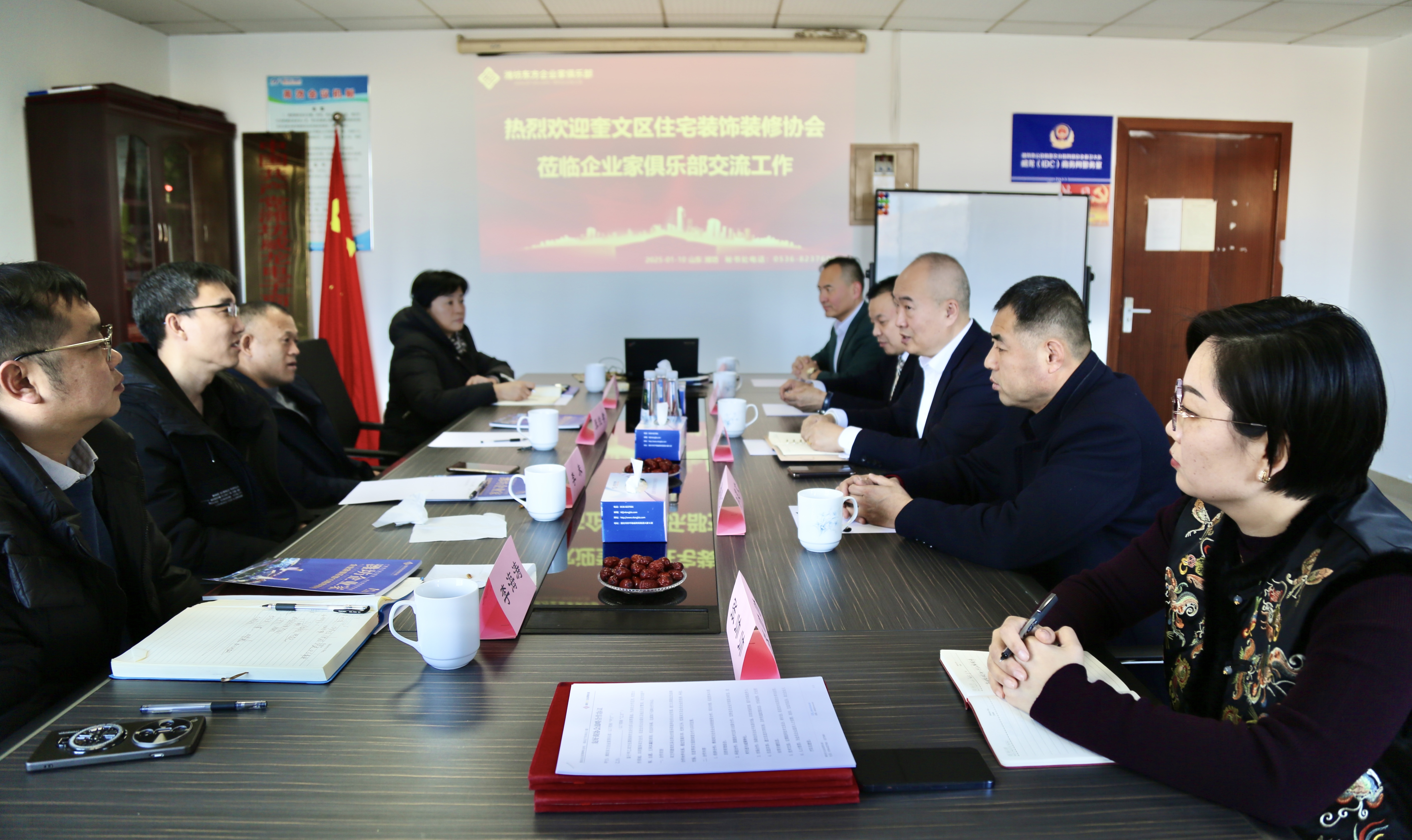 1月10日,奎文区住宅装饰装修协会到潍坊东方企业家俱乐部进行交流走访。