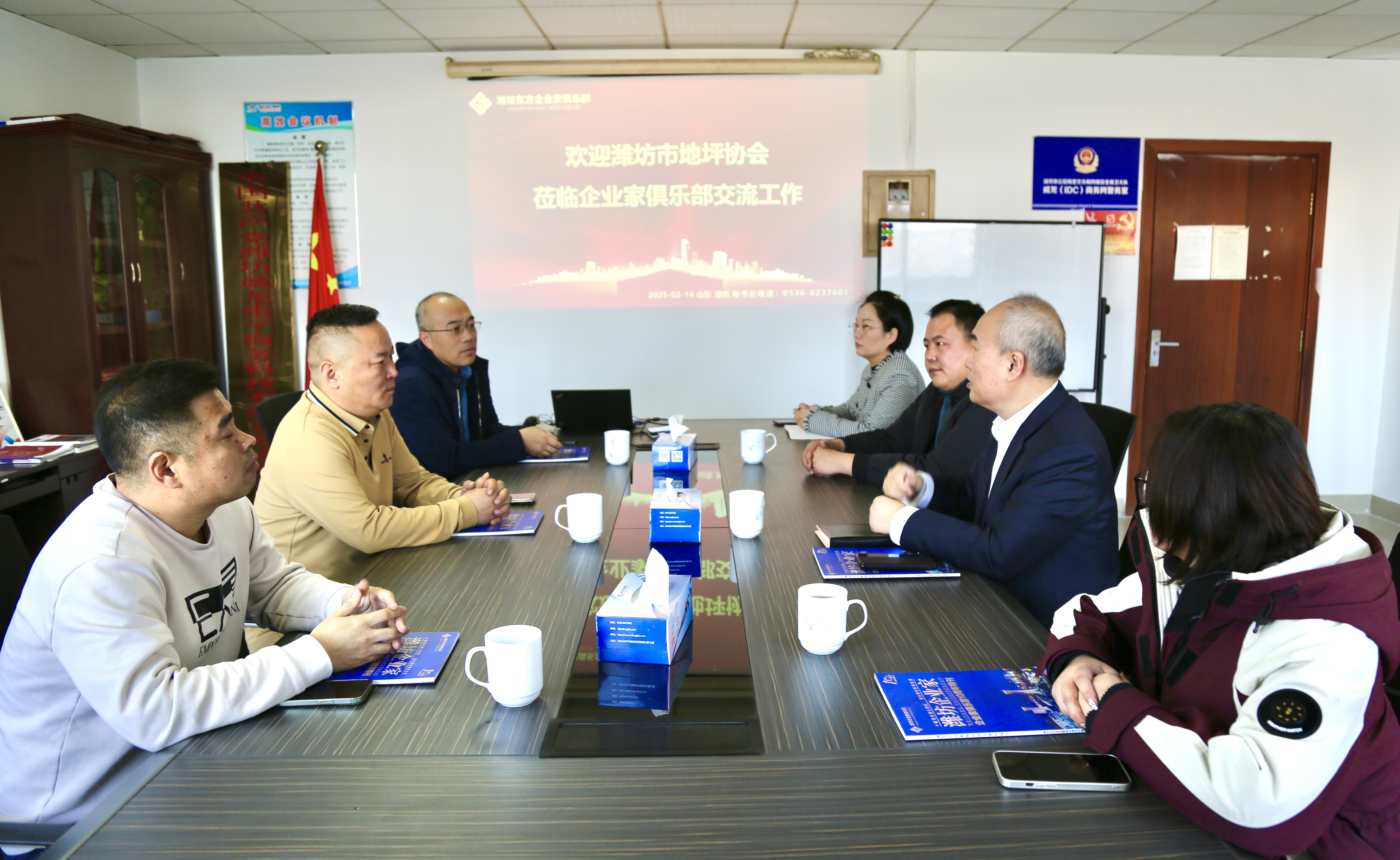 为进一步加强行业交流、探索合作机遇,2月14日,潍坊市地坪协会会长石宜长,轮值会长张行,执行秘书长郭小鹏一行到访潍坊东方企业家俱乐部。