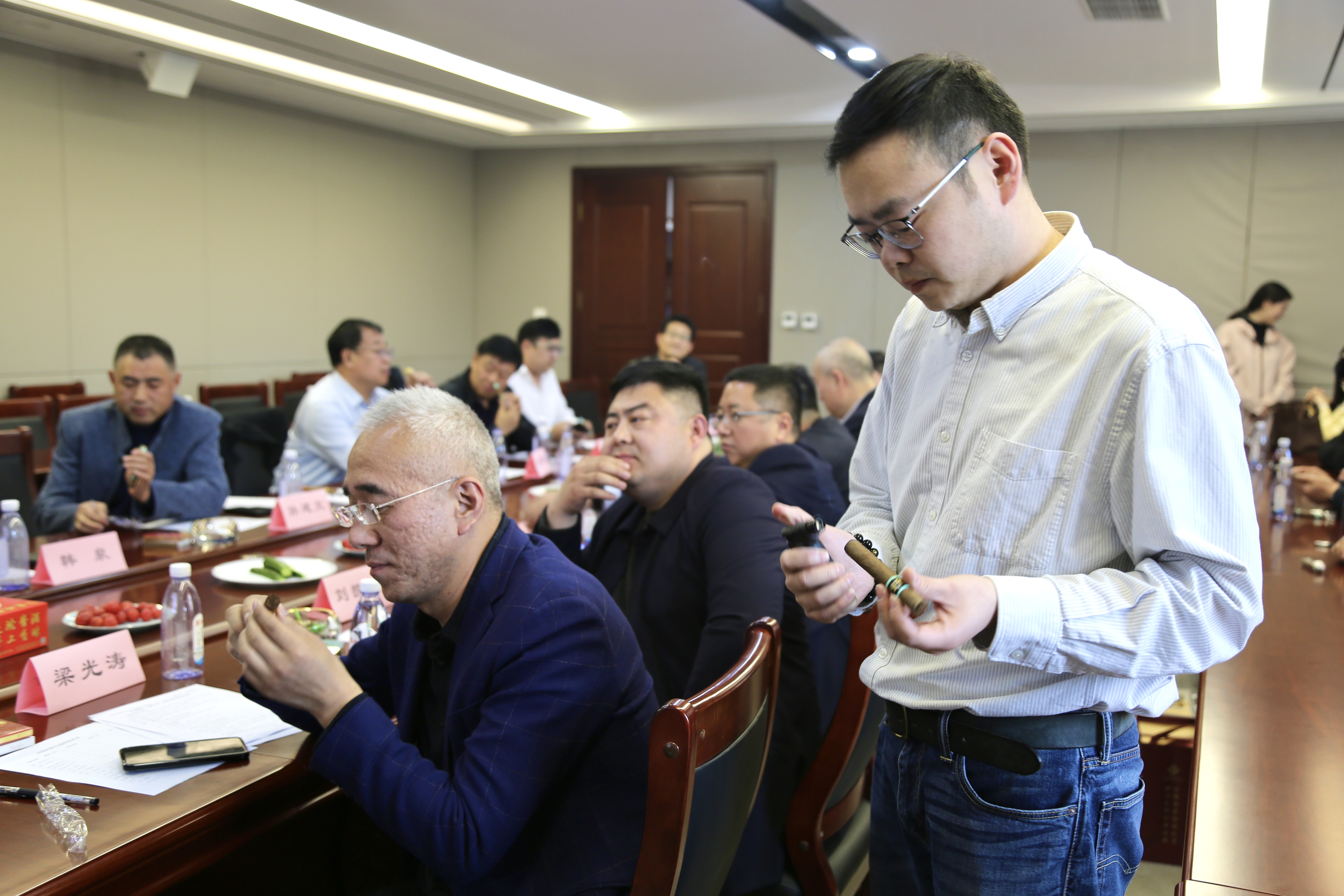 潍坊市烟草公司寒亭营销部马柱、潍坊市烟草公司营销中心经理隋岩在宣讲中则聚焦各烟草品类与健康品鉴理念,通过雪茄品鉴等互动体验,展现了烟草文化的独特魅力。