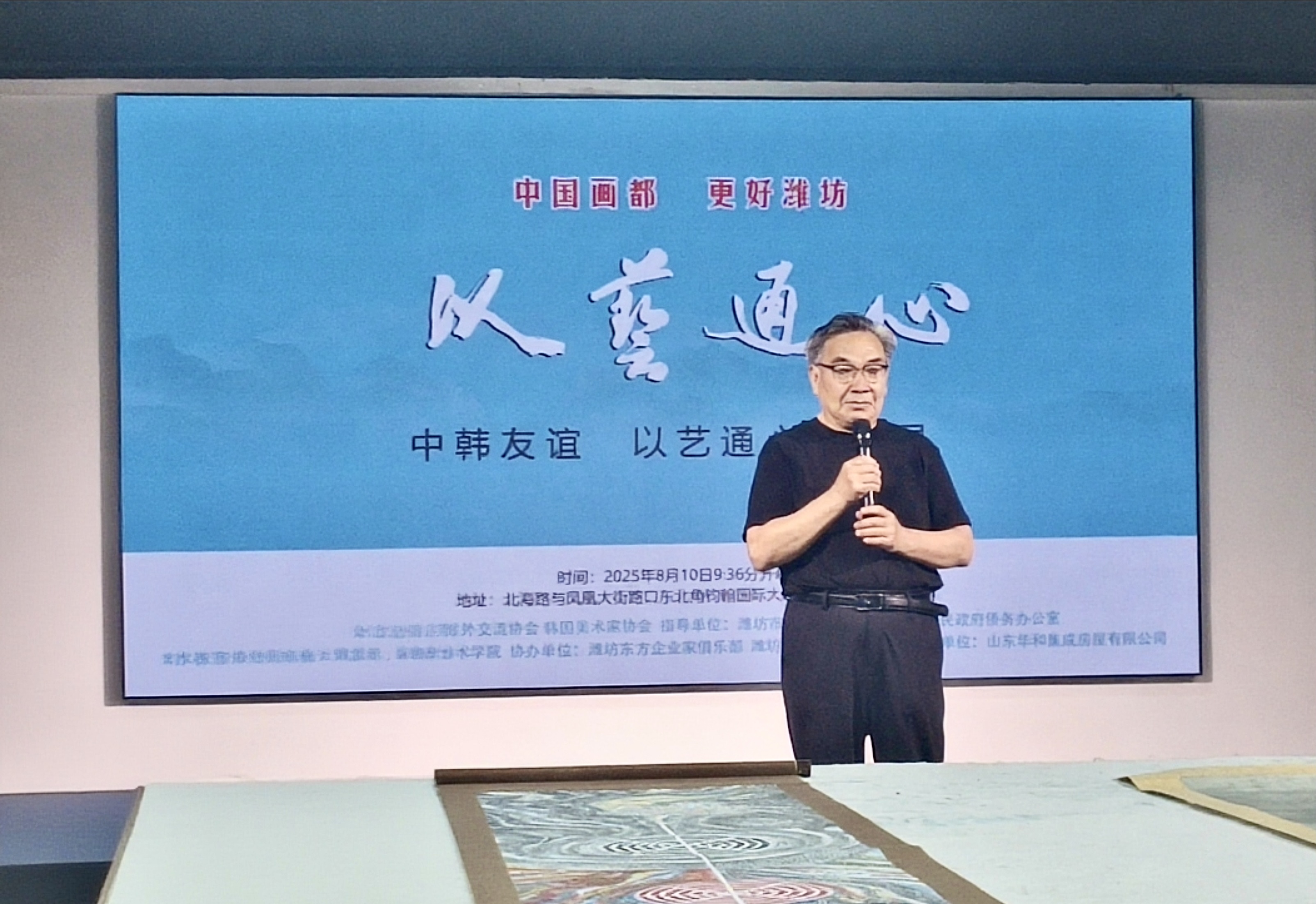 8月10日上午,由潍坊书画艺术对外交流协会主办,潍坊东方企业家俱乐部等协办的中韩友谊“以艺通心”画展在钧翰国际大酒店圆厅美术馆隆重开幕。本次画展不仅是艺术的盛会,更是中韩两国文化交流的重要桥梁。