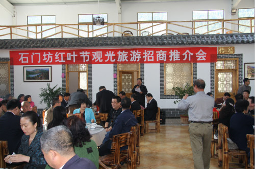 “千树万树的红叶,愈到深秋,愈加红艳;远远看去,就像火焰在滚动”。没错,这就是潍坊临朐石门坊景点的真实写照。 2014年11月2日,由潍坊市招商局,潍坊市旅游局,潍坊东方企业家俱乐部,潍坊市摄影家协会,海峡两岸企业家好友联谊会主办,由临朐县人民政府城关街道办,临朐县石门坊风景区管委会承办的“石门坊红叶节观光旅游推介会”在石门坊盛大召开。