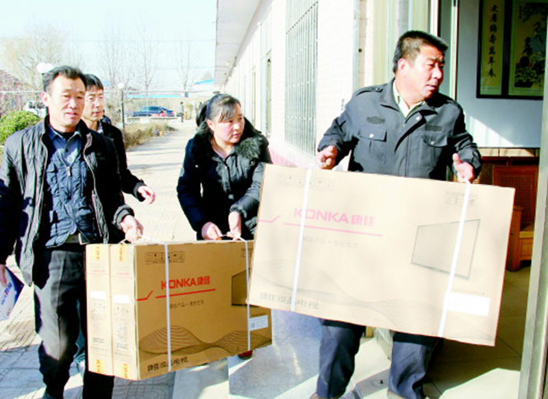 1月19日,潍坊市慈善总会、潍坊东方企业家俱乐部的企业家们,将20台电视机赠送到峡山区王家庄街道敬老院。