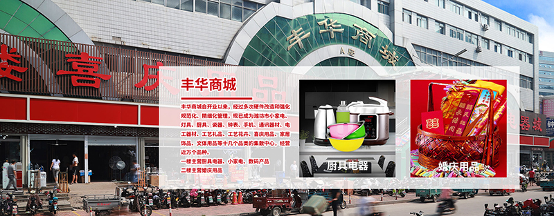 潍坊丰华(集团)公司,是一家集连锁超市、(厨电、喜庆用品)专业市场、配送服务、生态农业、餐饮服务、高端丝绸等为一体的民营股份制企业,其总公司前身是始建于1948年的国家二级批发企业,主营业态分布于潍坊市潍城区、奎文区、高新区、寒亭区与经济开发区。公司秉承“诚信、务实、发展、报国”理念,立足主营业务,拓展新兴业态,努力实现“贡献国家 造福社会 发展企业 成就员工”的宗旨和目标。