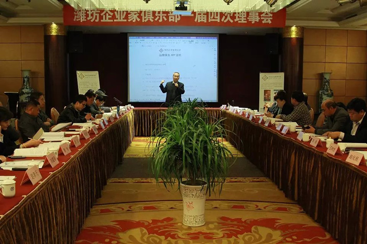 芳菲四月,姹紫嫣红,草长鸢飞,春光无限。4月9日潍坊东方企业家俱乐部一届四次理事会在泛海大酒店胜利召开。会议气氛热烈,凝心聚力,充满正能量。会上审议通过了《潍坊东方企业家俱乐部2015年发展纲要及工作计划实施细则》;调整增补了理事会成员,并现场进行了表决;对部分理事会成员颁发了奖牌;王大威会长详细讲解了潍坊东方企业家俱乐部品牌商城运营模式,引起大家极大关注,将会议推向高潮。