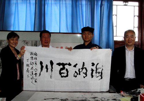 (潍坊东方企业家俱乐部太极养生顾问丁建民老师为天妃宫赠送书法作品)